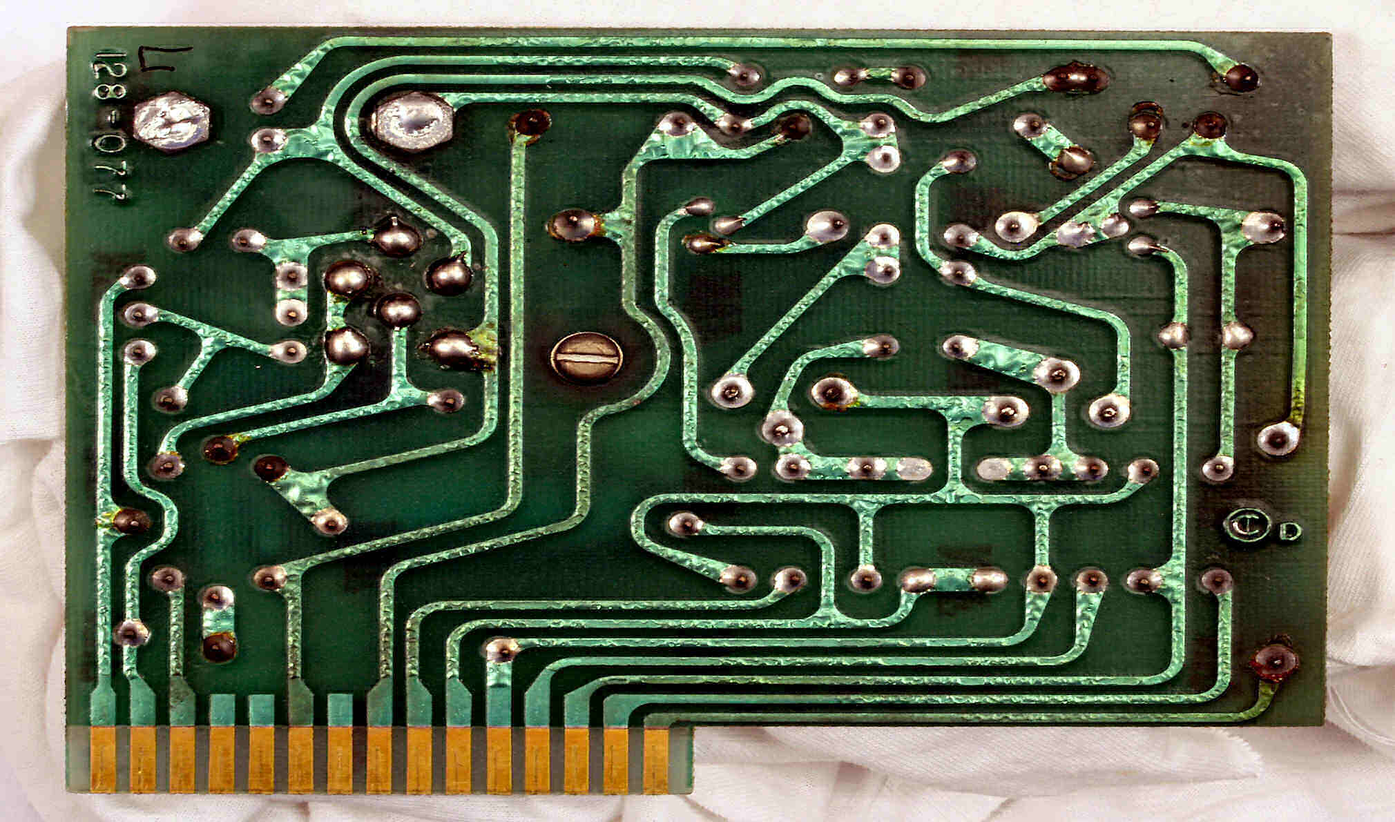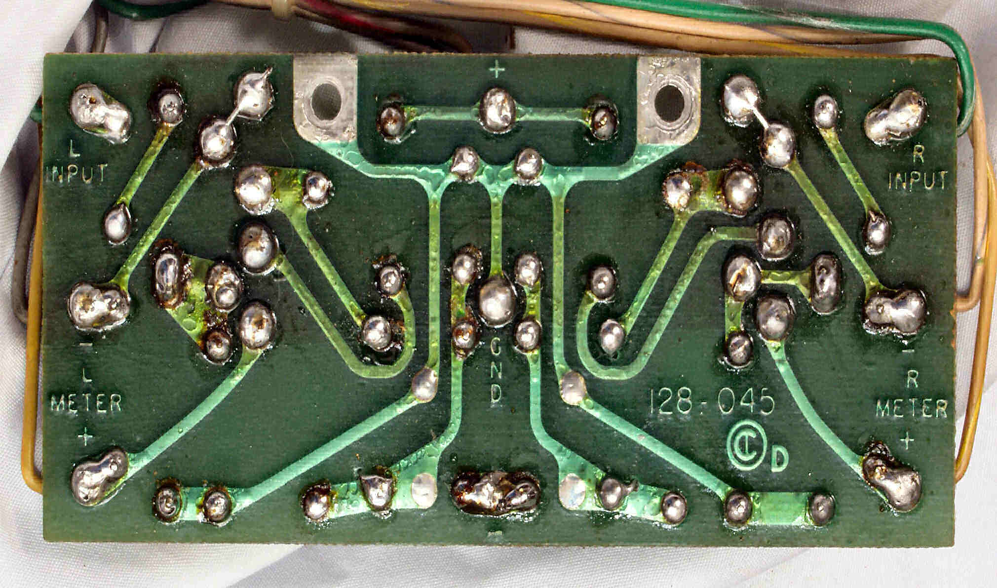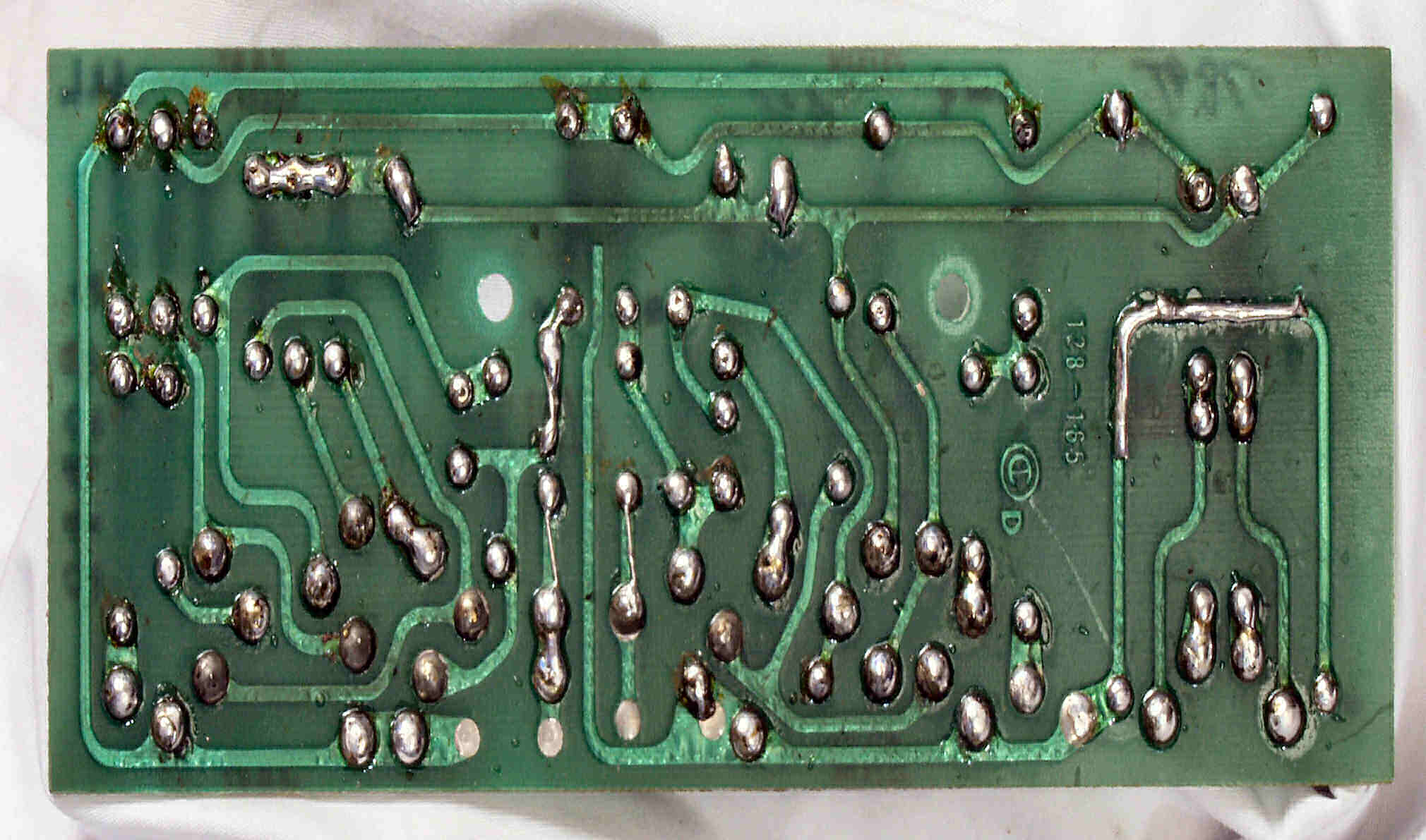 | C3D. 修理(半田補正)後 プリAMP基板裏。 半田を全部やり直す。 | ||||||||||||||||||||||||||||||