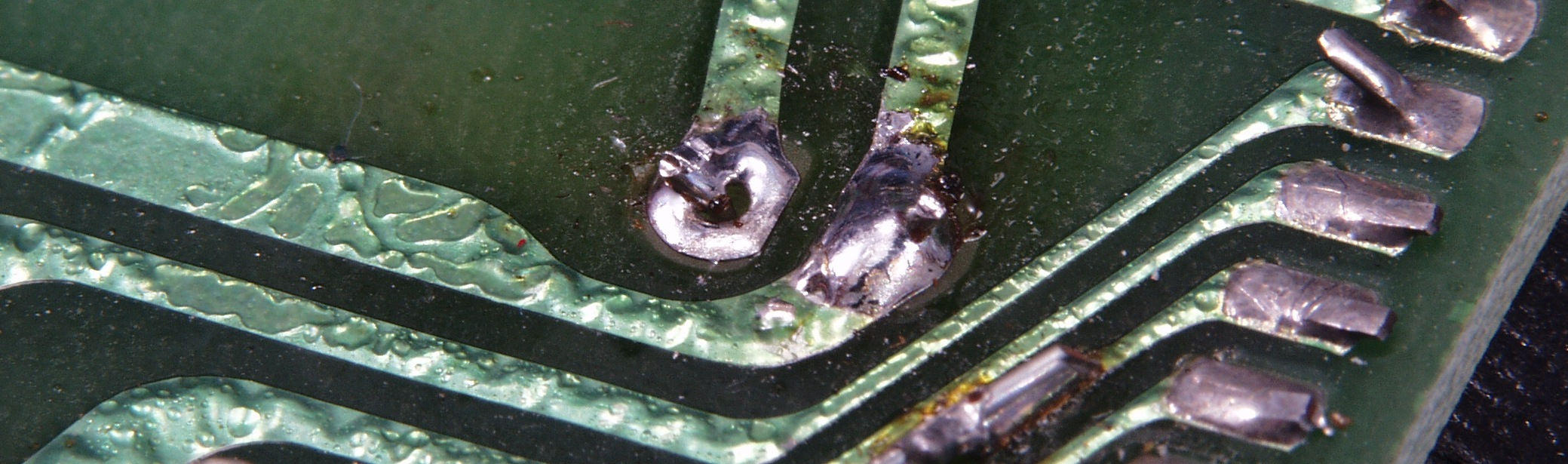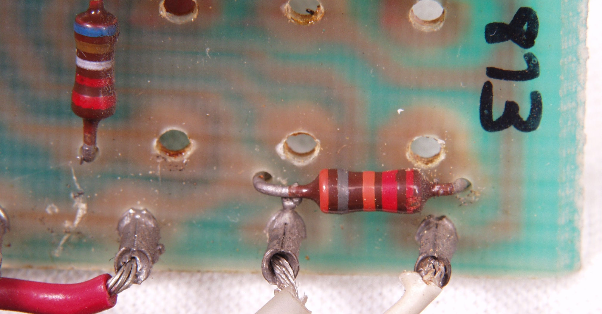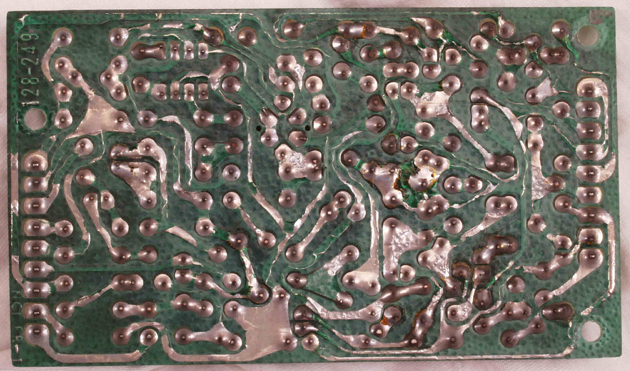 | A5A. 修理前点検中 定電圧基板裏の腐食した銅箔 | ||||||||||||||||||||||||||||||||||||||