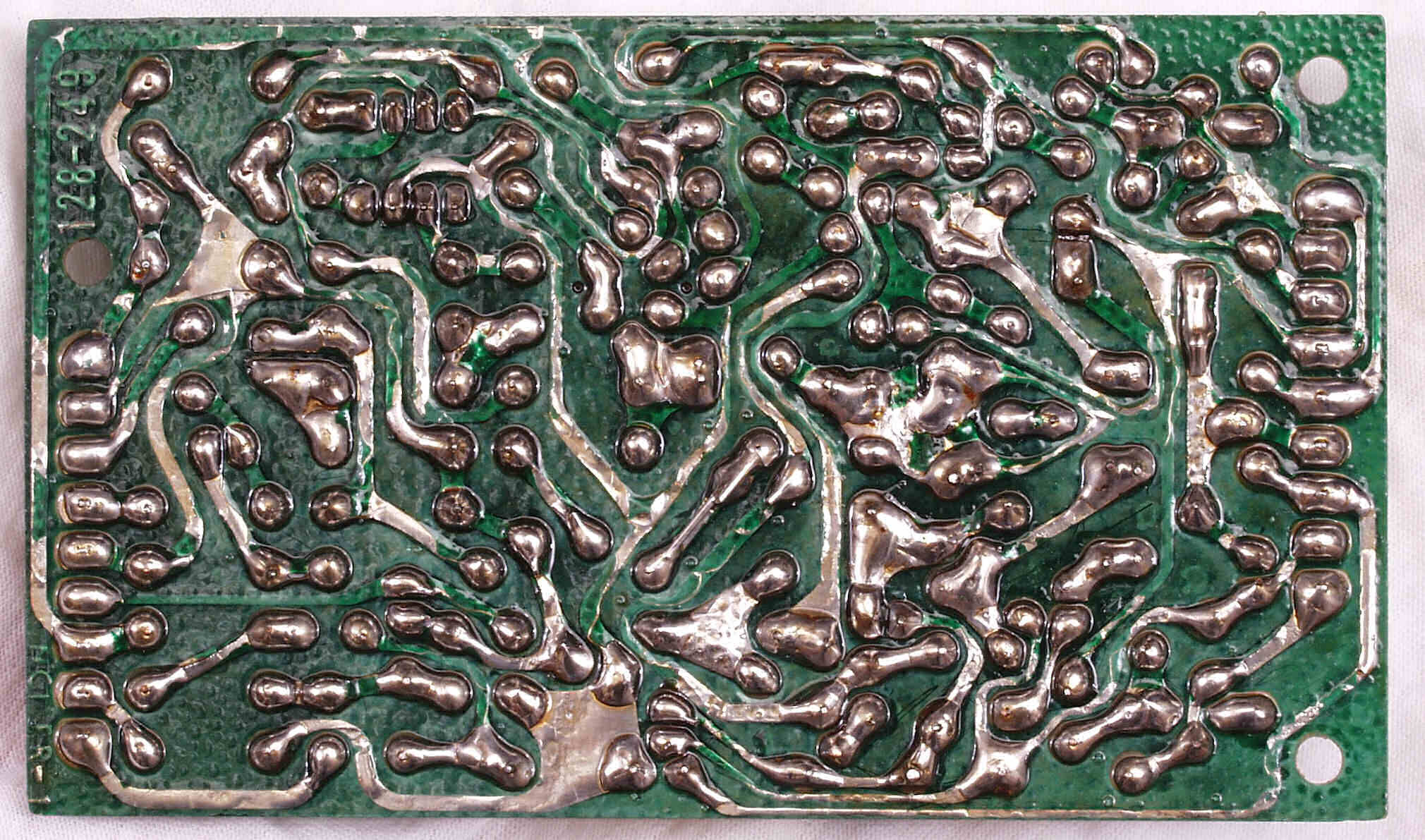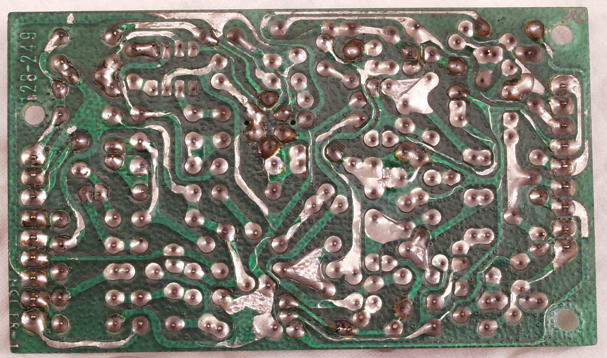 | C2D. 修理(半田補正)後 L−AMP基板裏。 半田を全部やり直す。 | ||||||||||||||||||||||||||||||||||||||