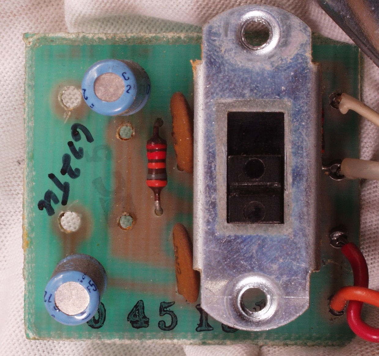 | C6A. 修理前 SP接続リレー・高温度関知サーミスター。 2個直列に高温度関知サーミスターを経由してAC120Vが電源トランスに供給される |