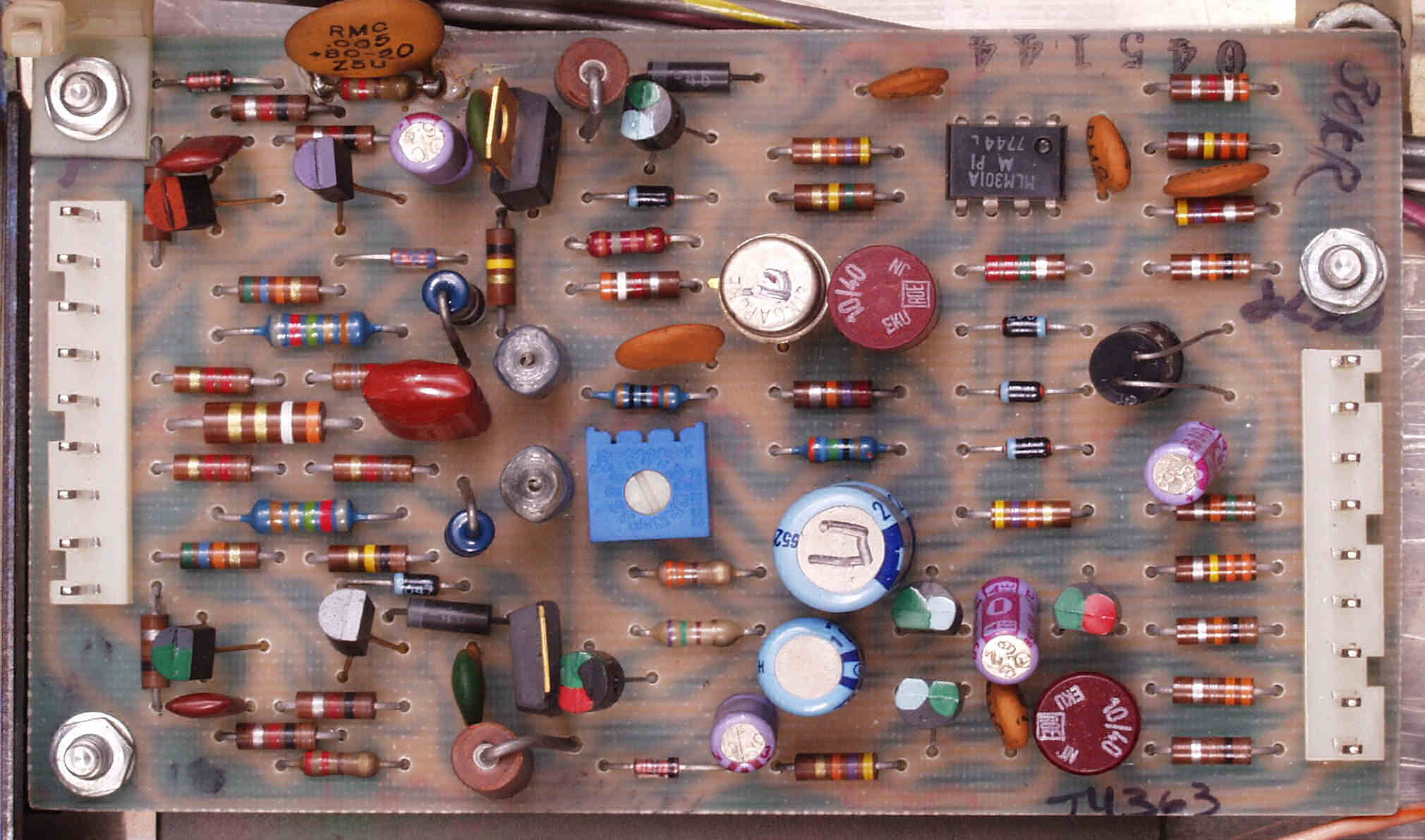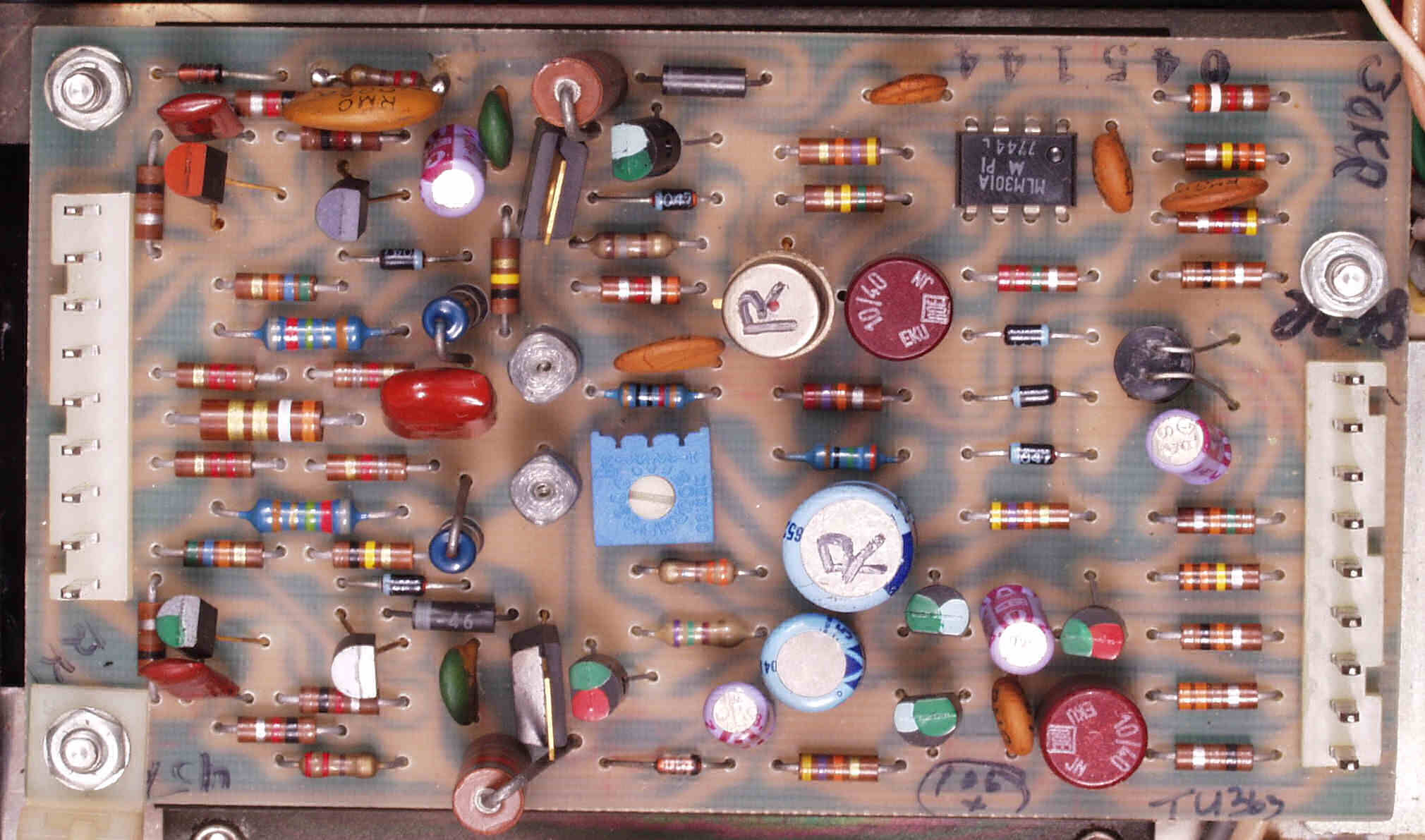 | C1B. 修理後 R−AMP基板 R−AMP基板 OP−AMP、電解コンデンサー8個、フイルムコンデンサー3個、半固定VR交換 | ||||||||||||||||||||||||||||||||||||||