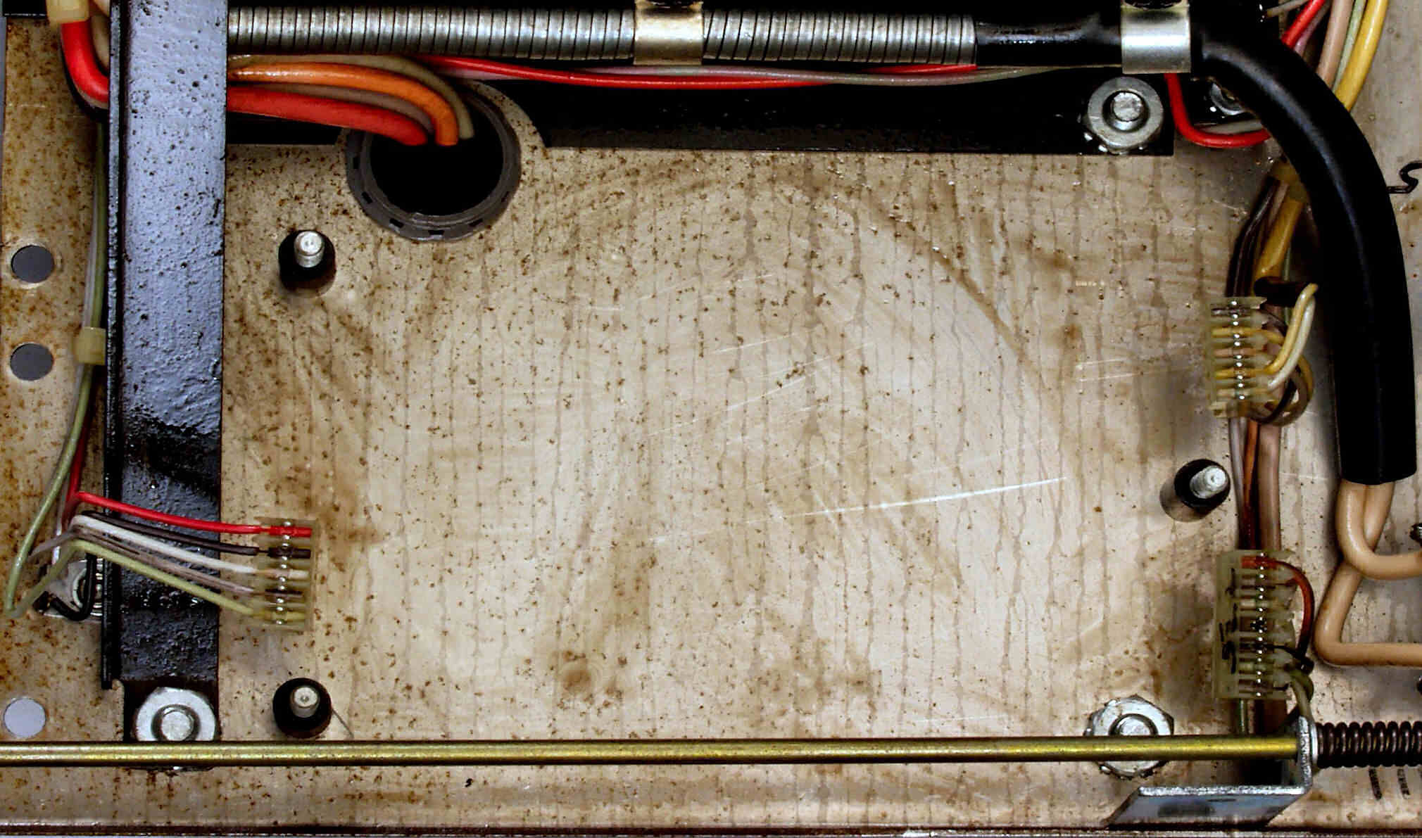 | CB1. 修理前 R−AMP基板下のステンレスシャーシの錆び、ステンレスは釘1本+水分で錆が発生する | ||||||||||||||||||||||||||||||||||