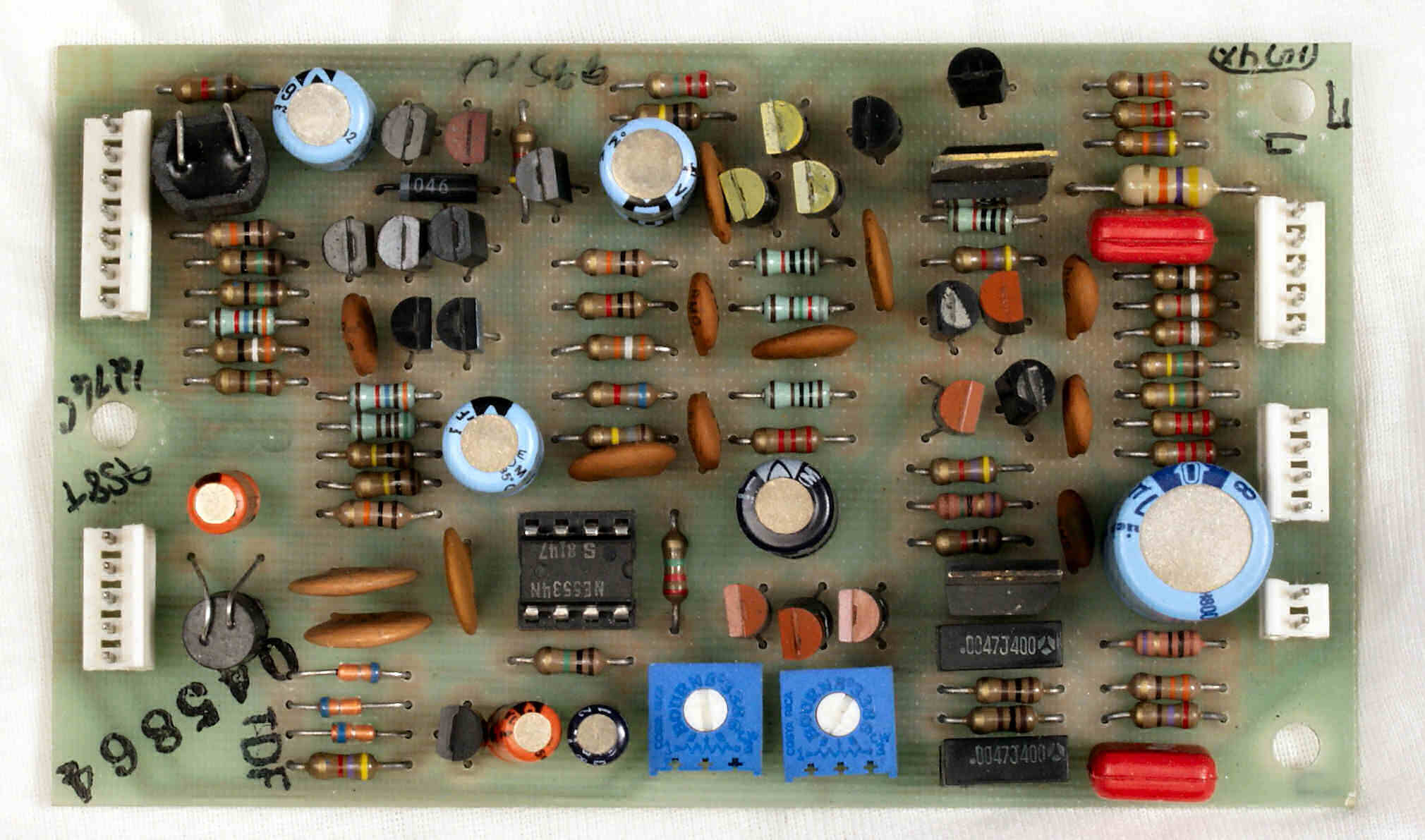 | C22. 修理後 L−AMP基板 OP−AMP(撮影後)、電解コンデンサー9個、半固定VR2個交換 | ||||||||||||||||||||||||||||||||||