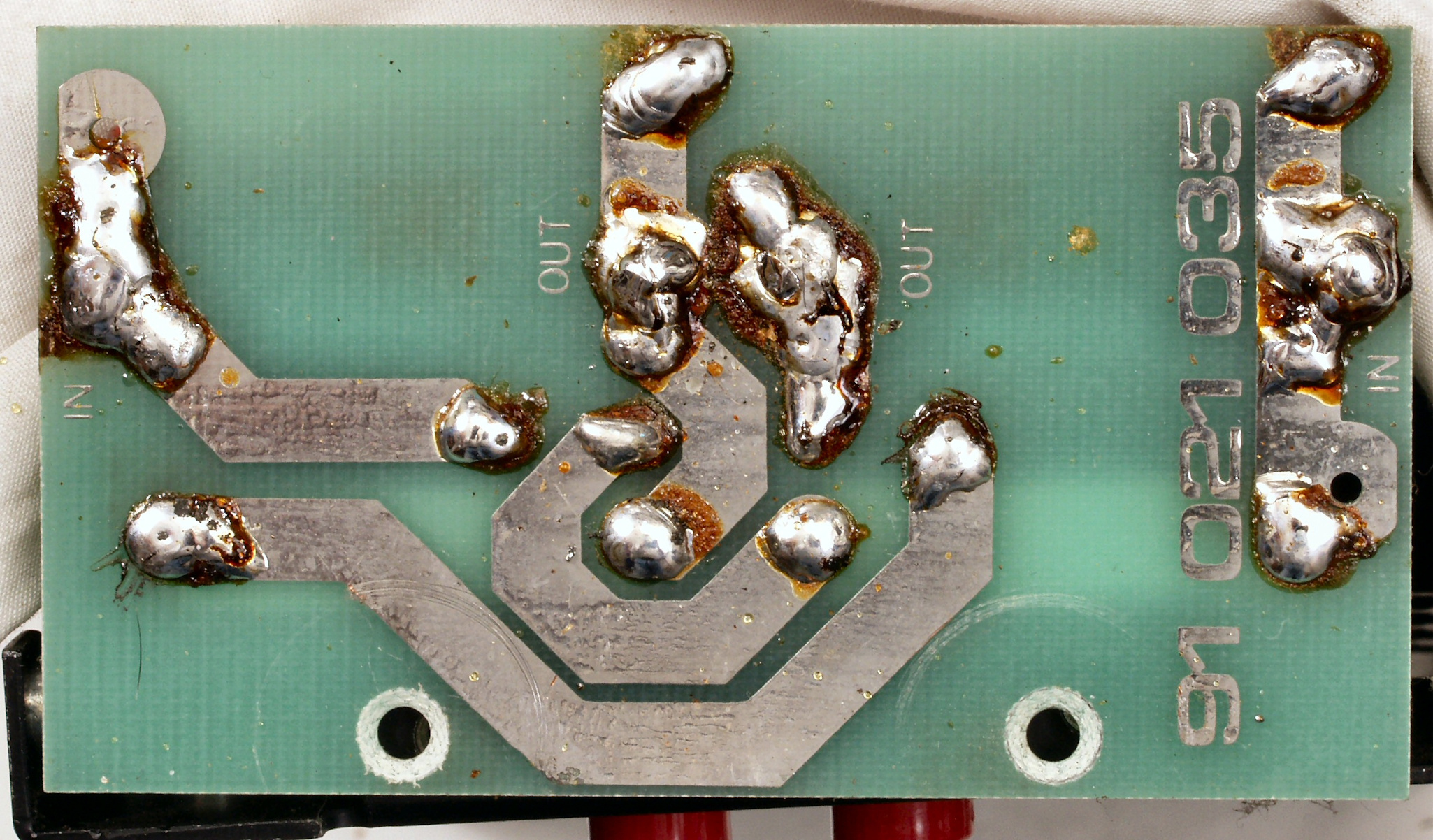 | C66. 修理前 L「−」側−終段TR(トランジスター)基板裏 | ||||||||||||||||||||||||||