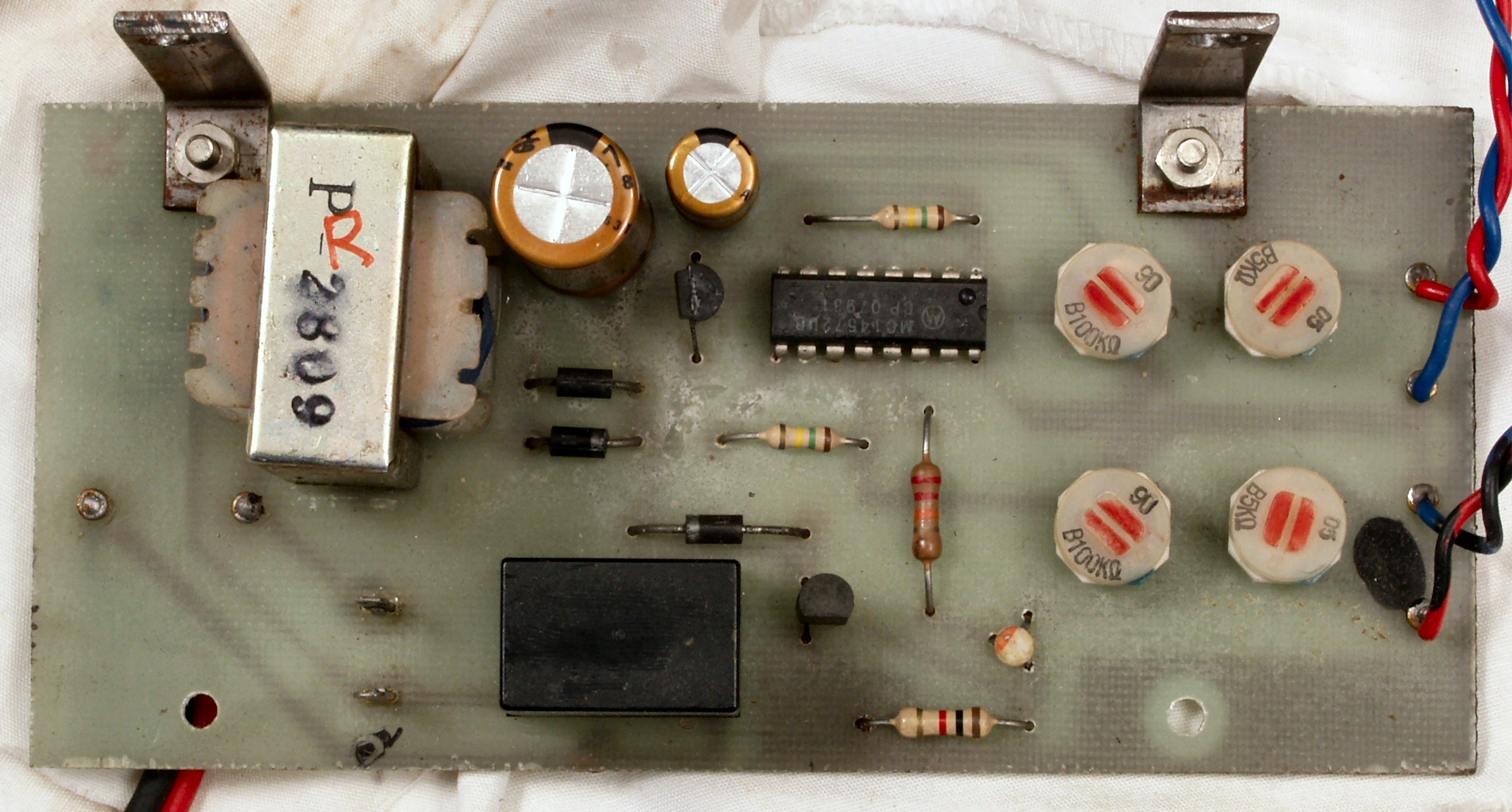 | C68. 修理(半田補正)後 L「−」側−終段TR(トランジスター)基板裏、 半固定VR1個交換 | ||||||||||||||||||||||||||