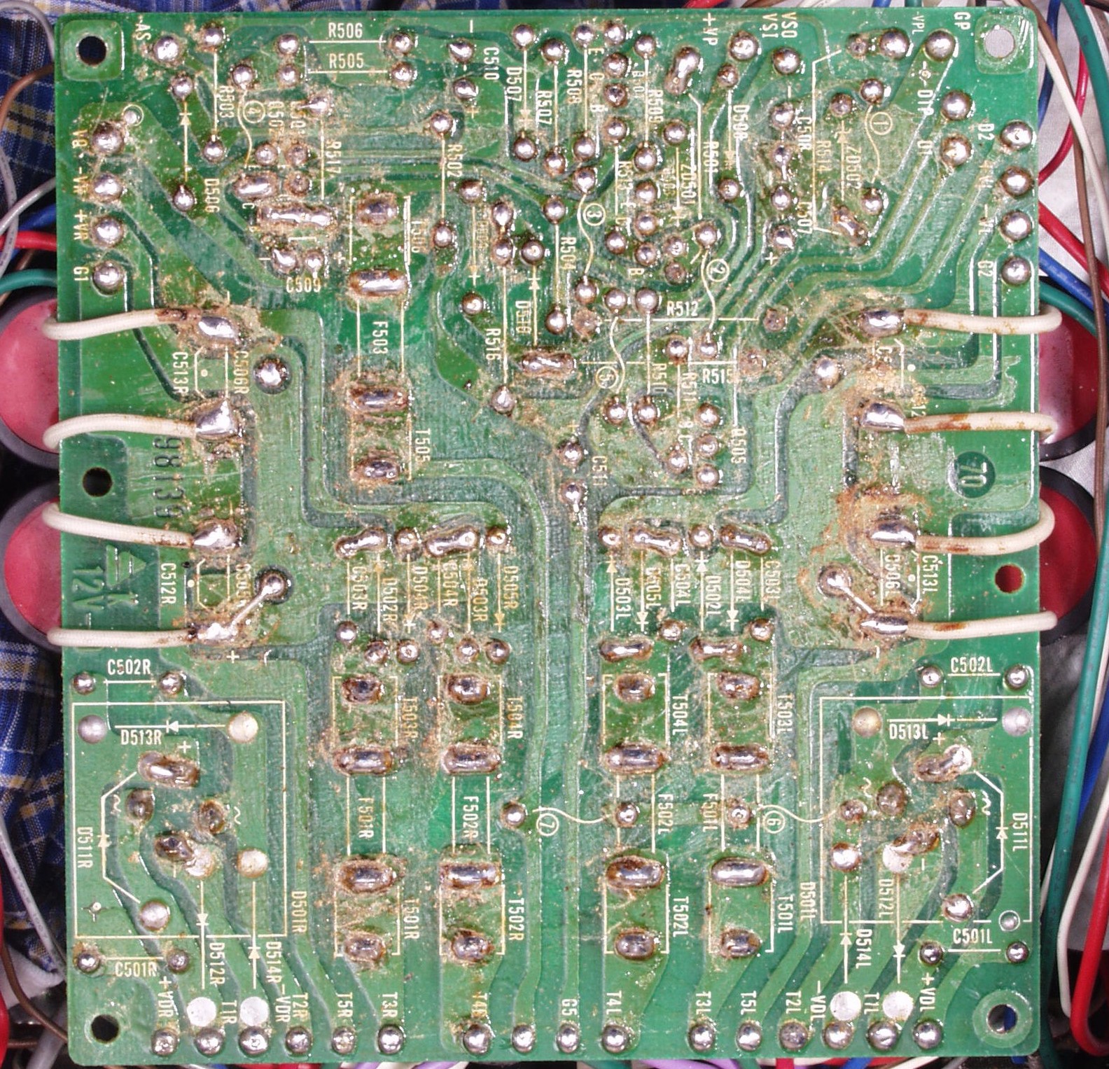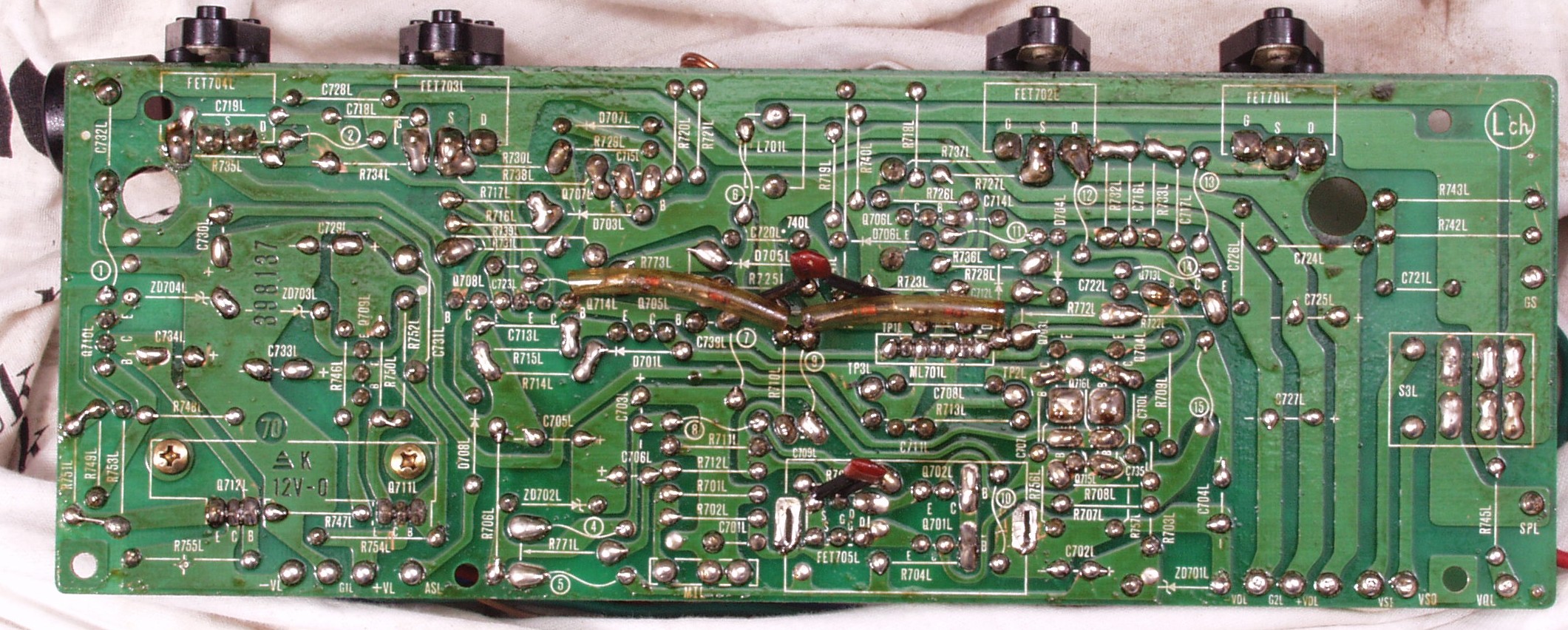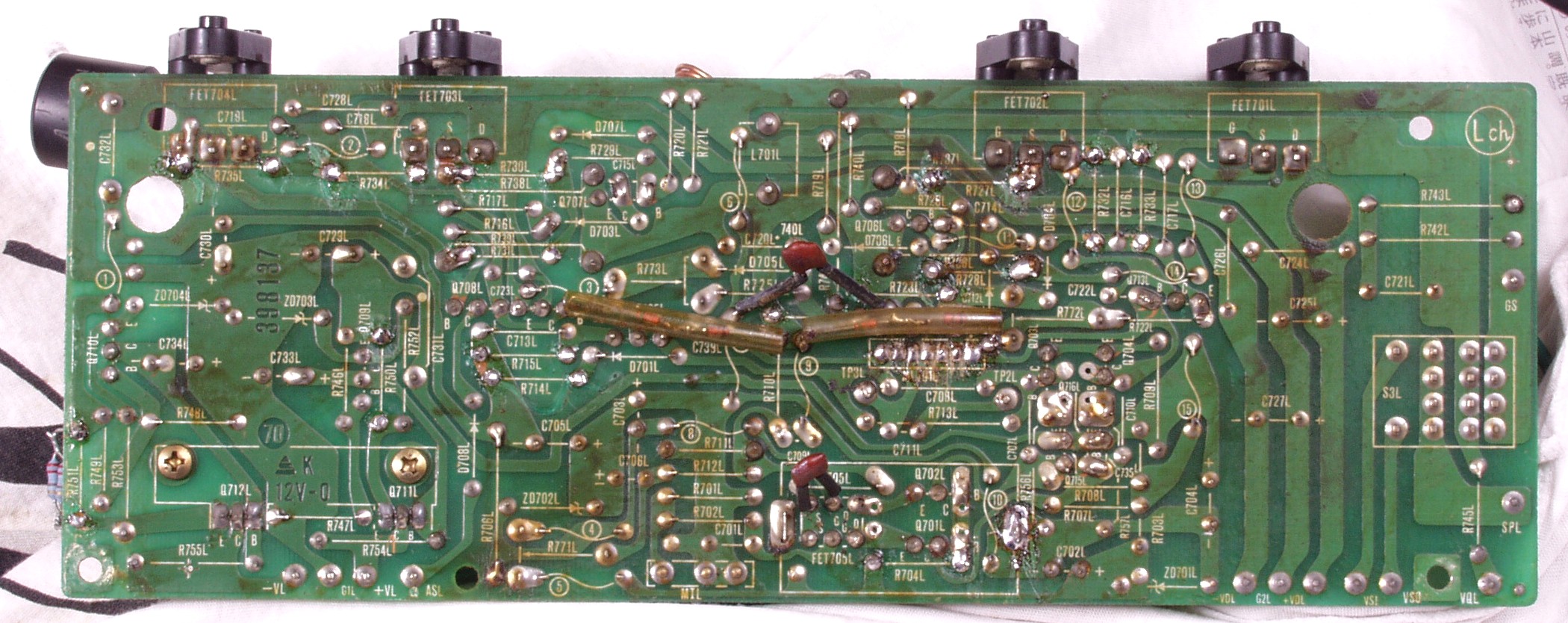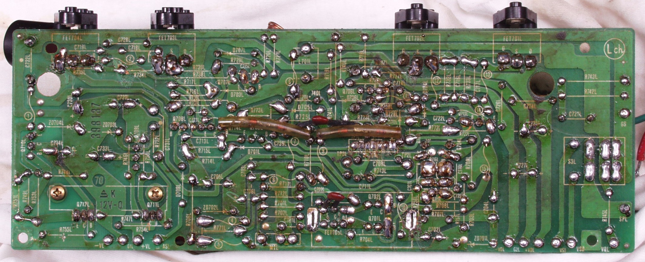 | C2D. 修理(半田補正)後 Lドライブ基板裏 半田を全部やり直す 普通はこれで完成 |