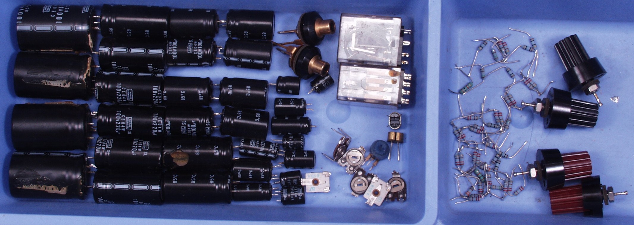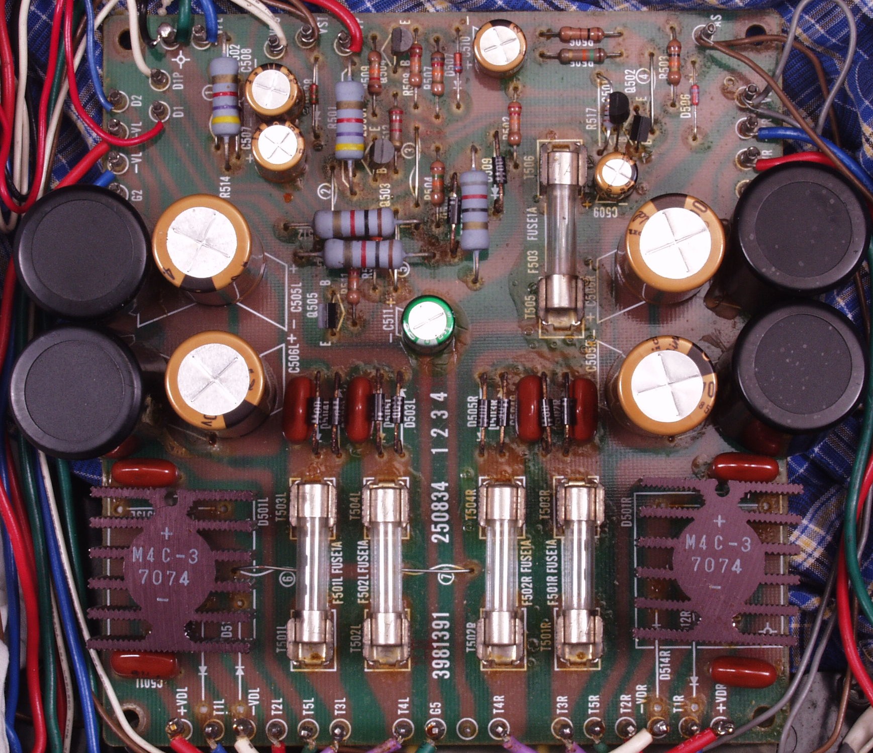 | C3B. 修理後 電源基盤 フューズ入り抵抗全部、電解コンデンサー9個交換 |