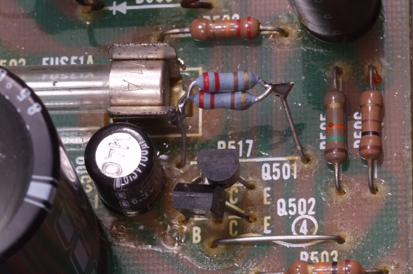 | A3. 点検中 電源基盤の交換されたフューズ入り抵抗を普通の抵抗に交換! |