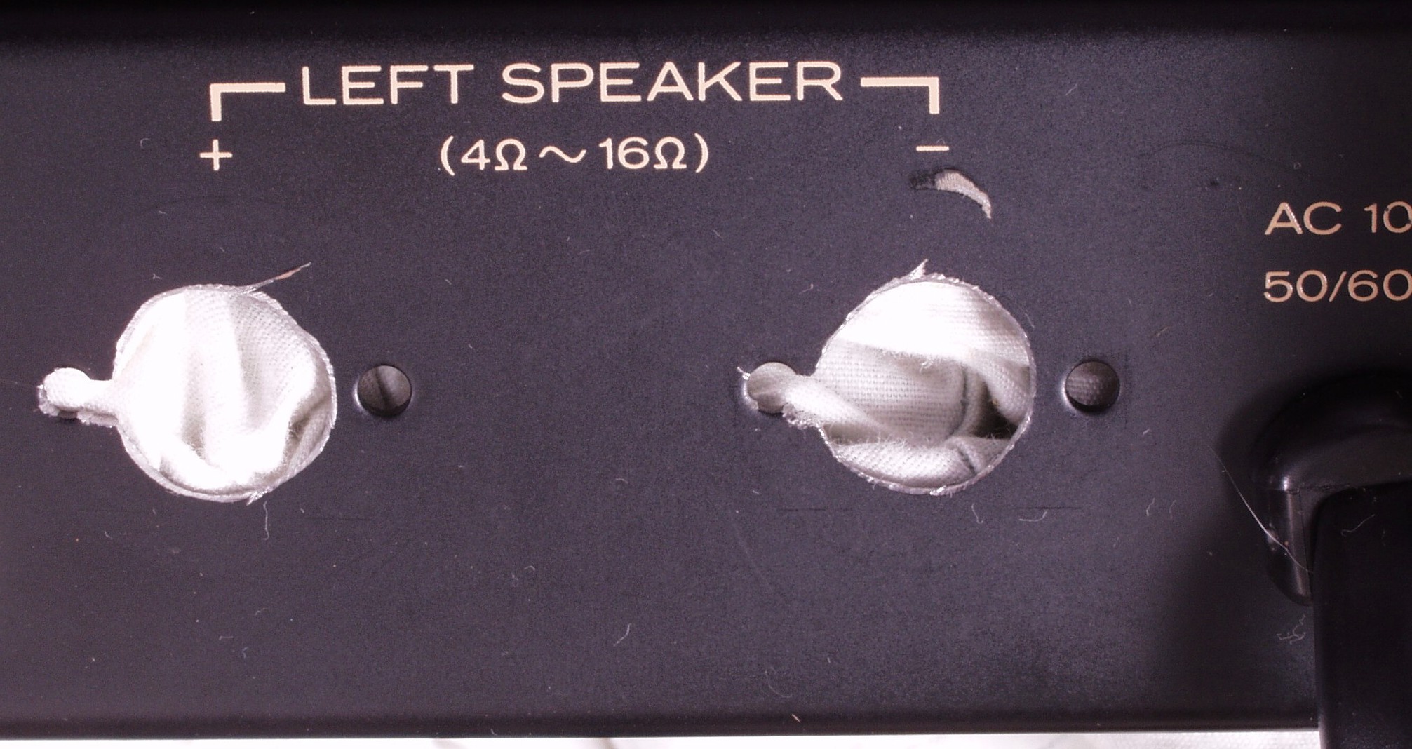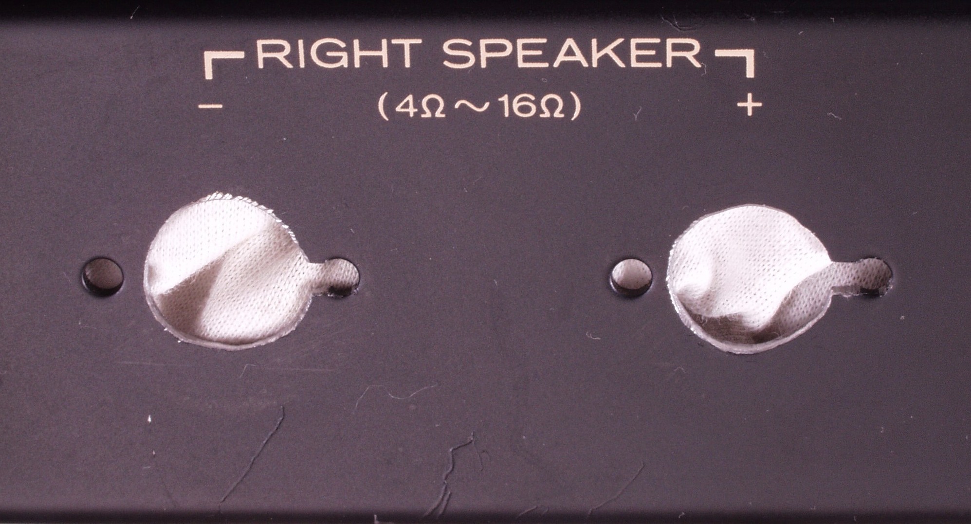 | C48. 修理後 R側SP端子への接続 WBTのネジ止めを生かし、ネジ止め接続+半田接続のW配線にした 理由は此方参照 |