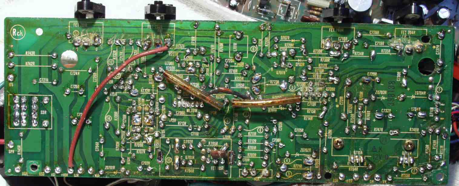 C−1D. 修理(半田補正)後 Rドライブ基板裏  全ての半田をやり直す