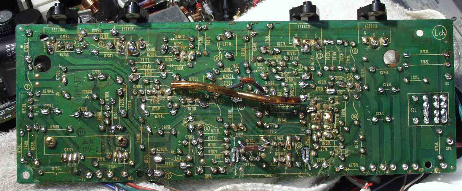 C−2D. 修理(半田補正)後 Lドライブ基板裏  全ての半田をやり直す