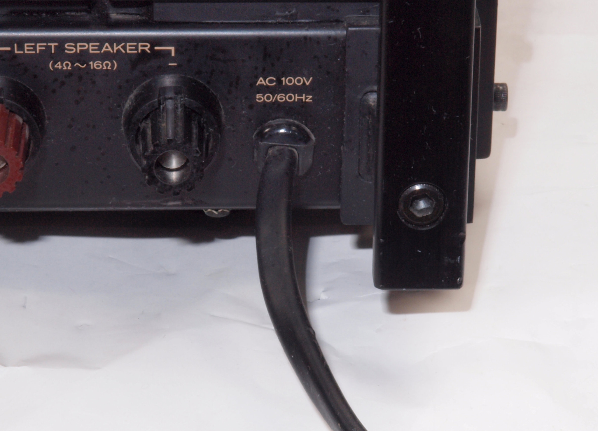 | C77. 修理前 入力RCA端子基板取付。 曲がっている。 |