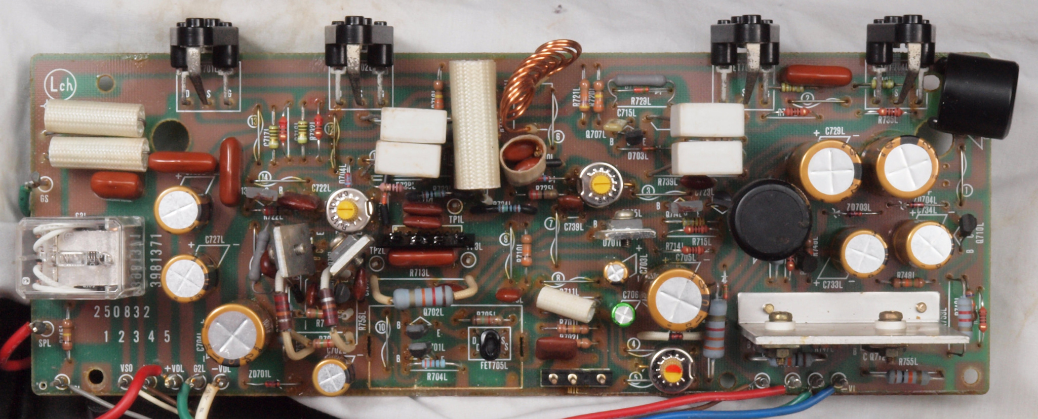 | C72. 修理後 入力RCA端子基板。 フイルムコンデンサー2個交換。 |