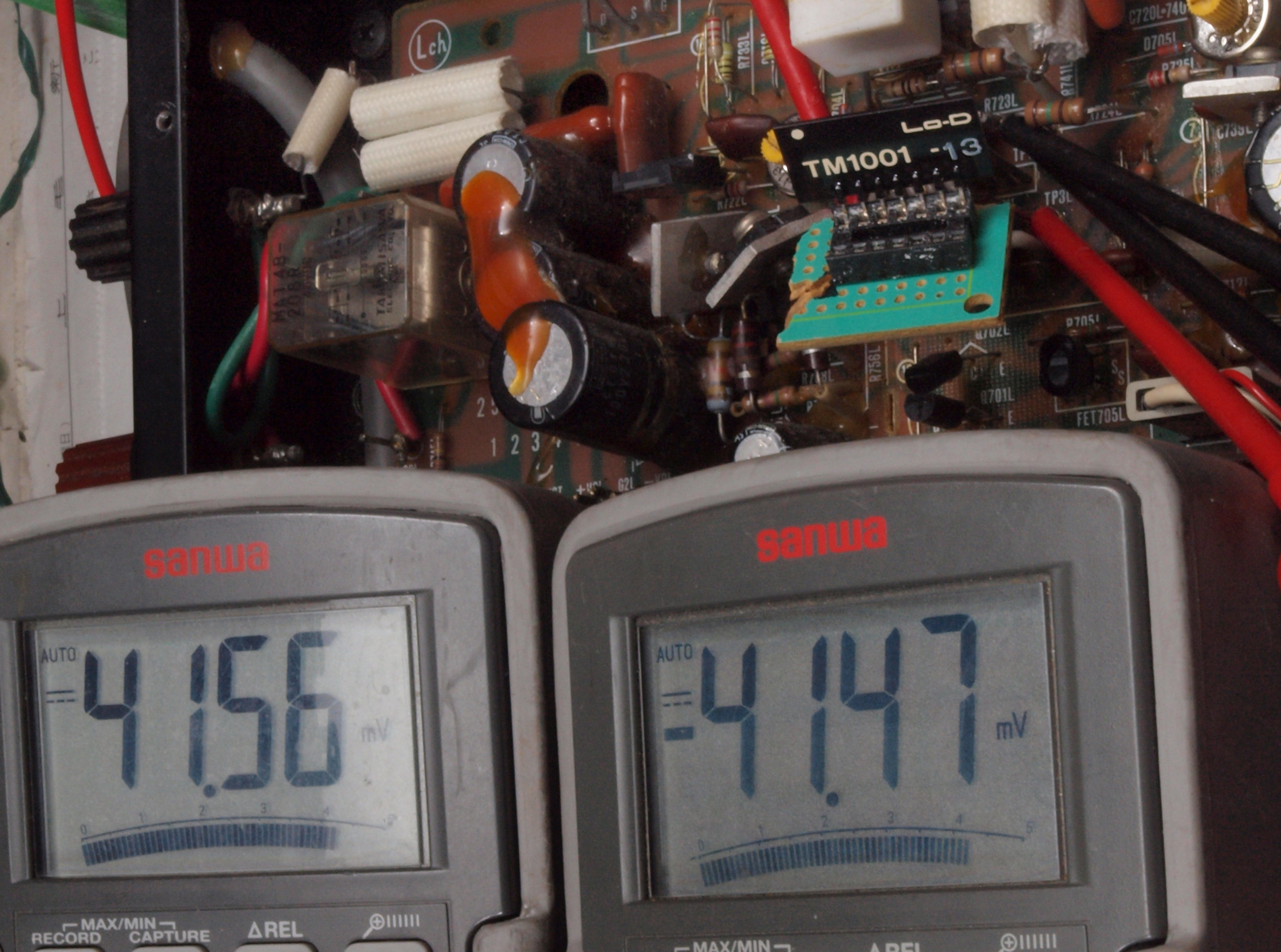| C43. 修理中 RLモジュール裏。 TR(トランジスター)6個交換し、洗浄後軽くラッカーを吹く。 |