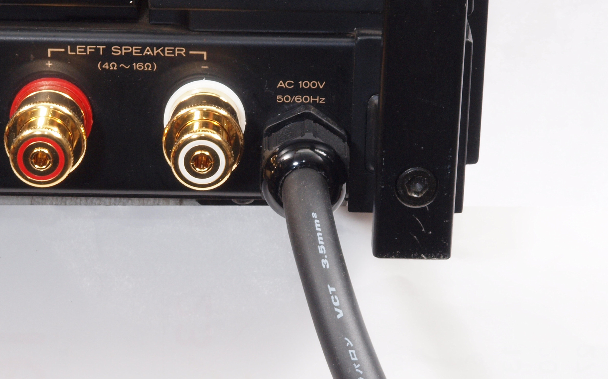 | A83. 点検中 交換する電源コード(3.5スケア)、 PSE合格品なので被服が分厚い! |