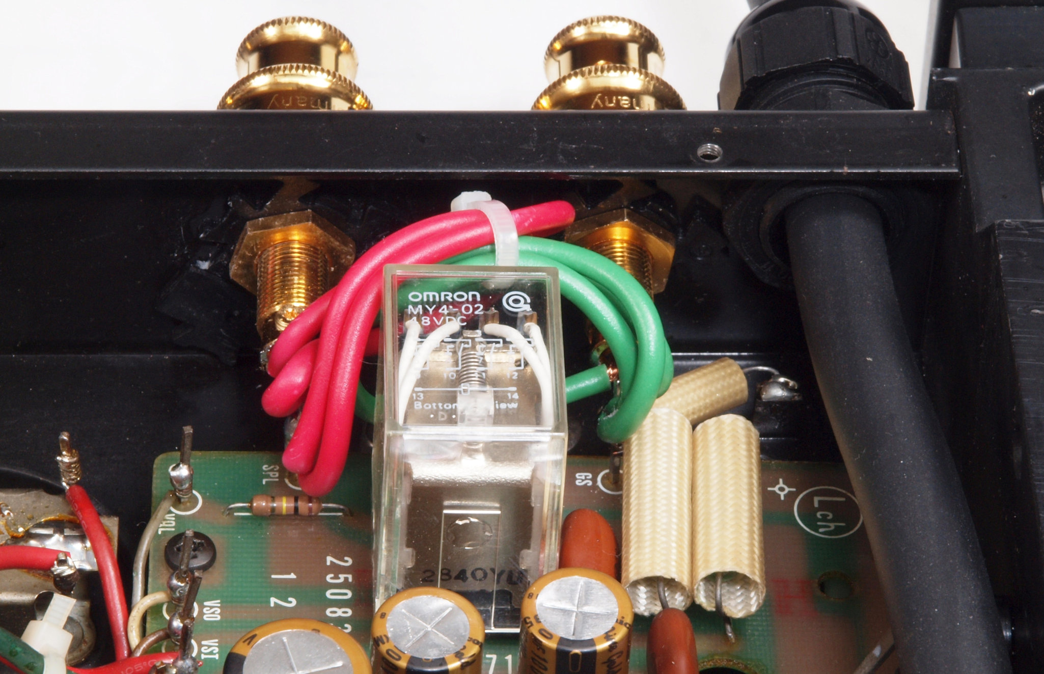 | 注意 このAMPはアースラインが浮いています。 AMPのシャーシにSPの線(アース側)やプリAMPのアースもも接続してはいけません。 RL−SPのアース線も接続(共通)してもいけません、+−の撚りのあるのも使用出来ません。 又、DC(directconnection)入力が可能ですが、絶対に使用しないこと=ここ参照 |