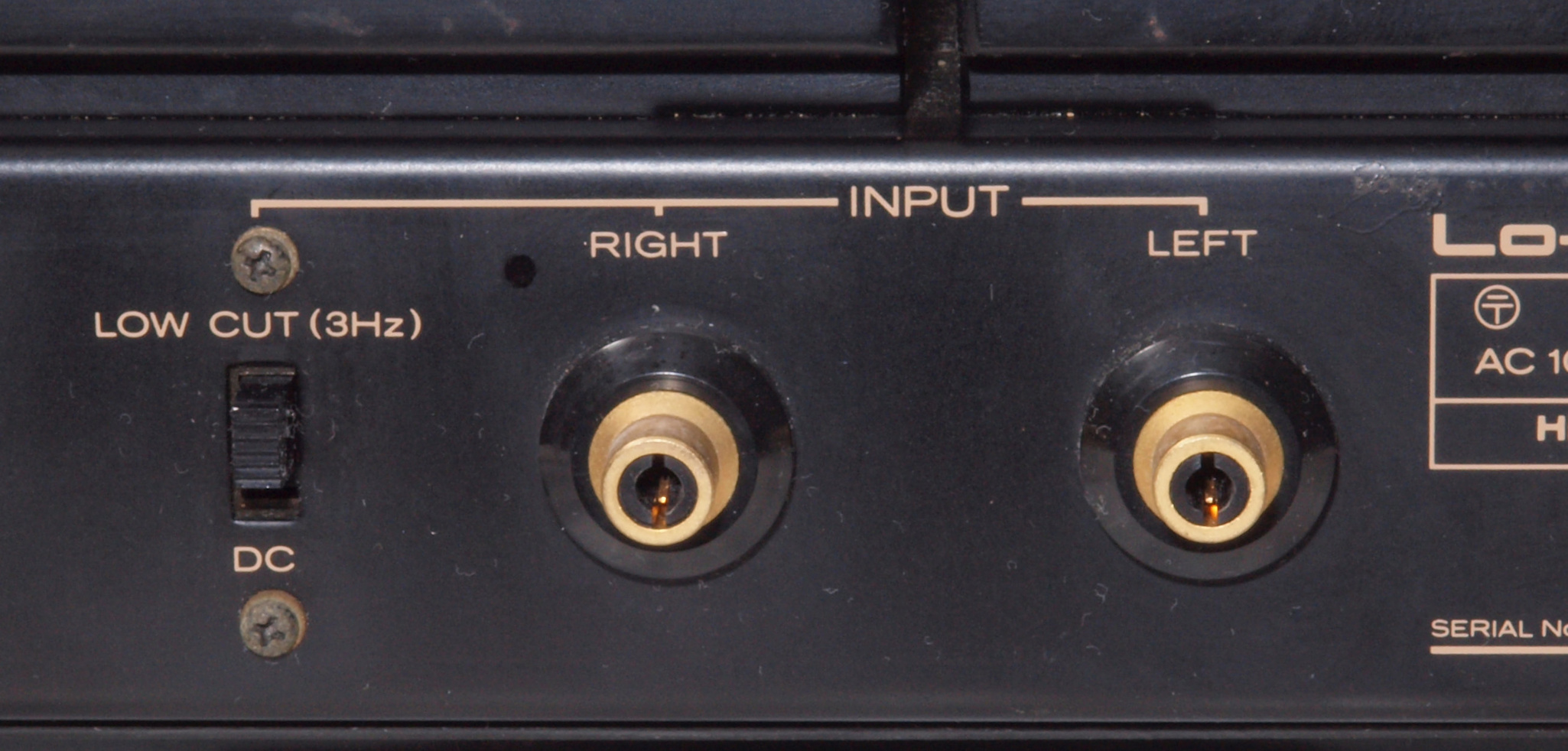 | A614. 点検中 入力RCA端子。 WBT−0210Cuに交換可能です。 |