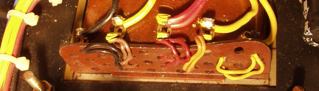 又、右側KT−88のヒ−タ−配線を増強する(左のUSソケットに入る空色/黄色の線) |