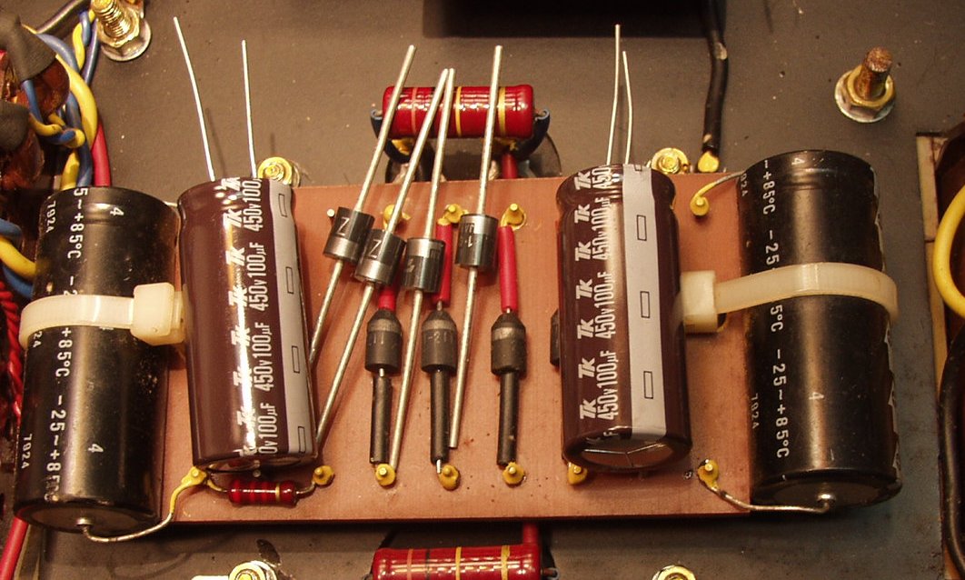 | C−6.修理後 バイアス整流回路 上下の2個は高圧用 |