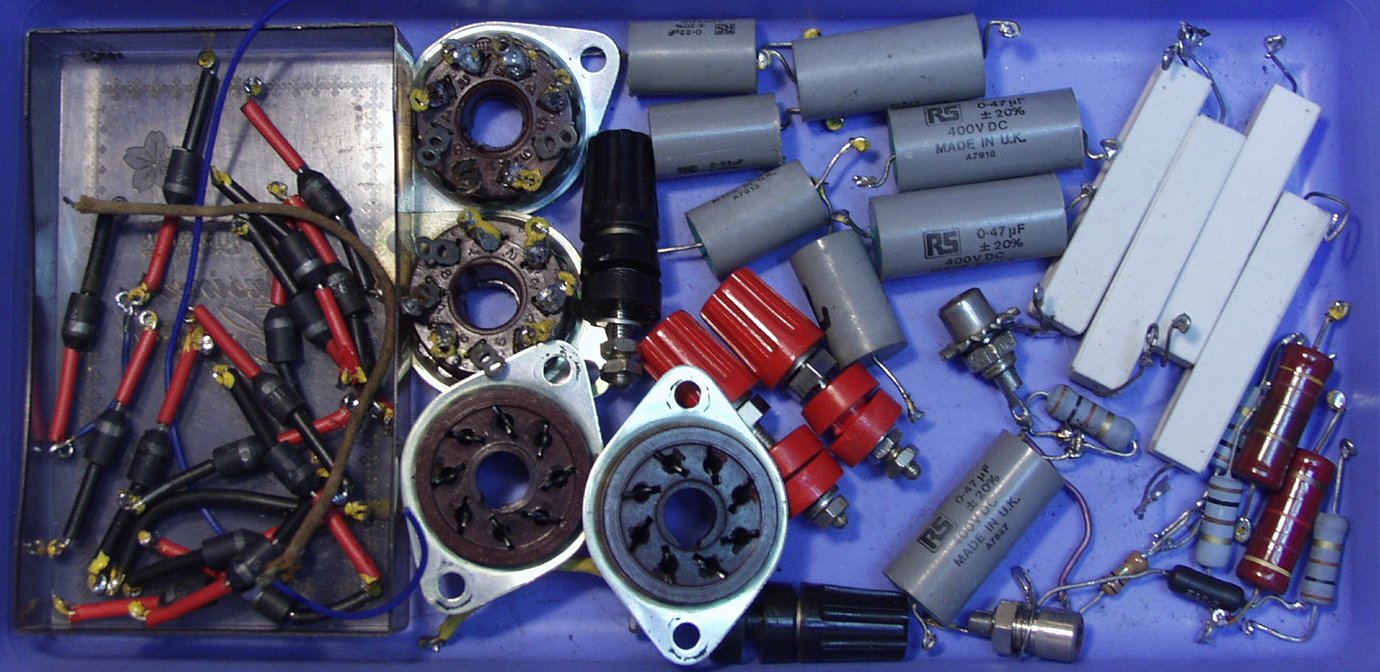 | A−8.修理前 熱で劣化しているKT−88のソケット、中は交換するステアタイト(磁器)製 |