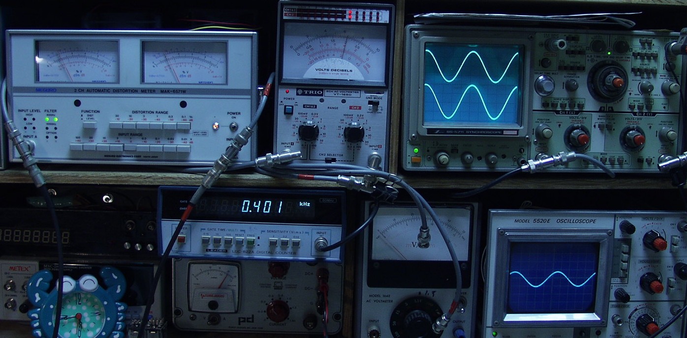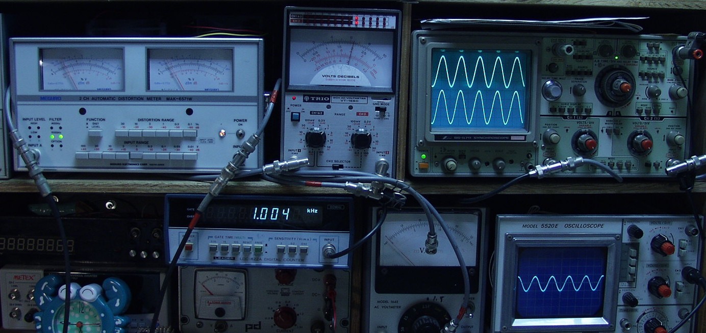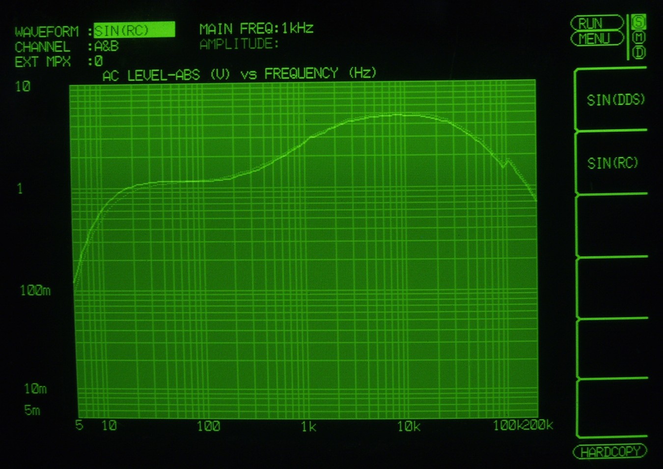 | F. 上位測定器による 調整・測定 F0. 下のオーディオアナライザーVP−7732Aで自動測定。 ケースが十分でないので、結果は少し悪い |