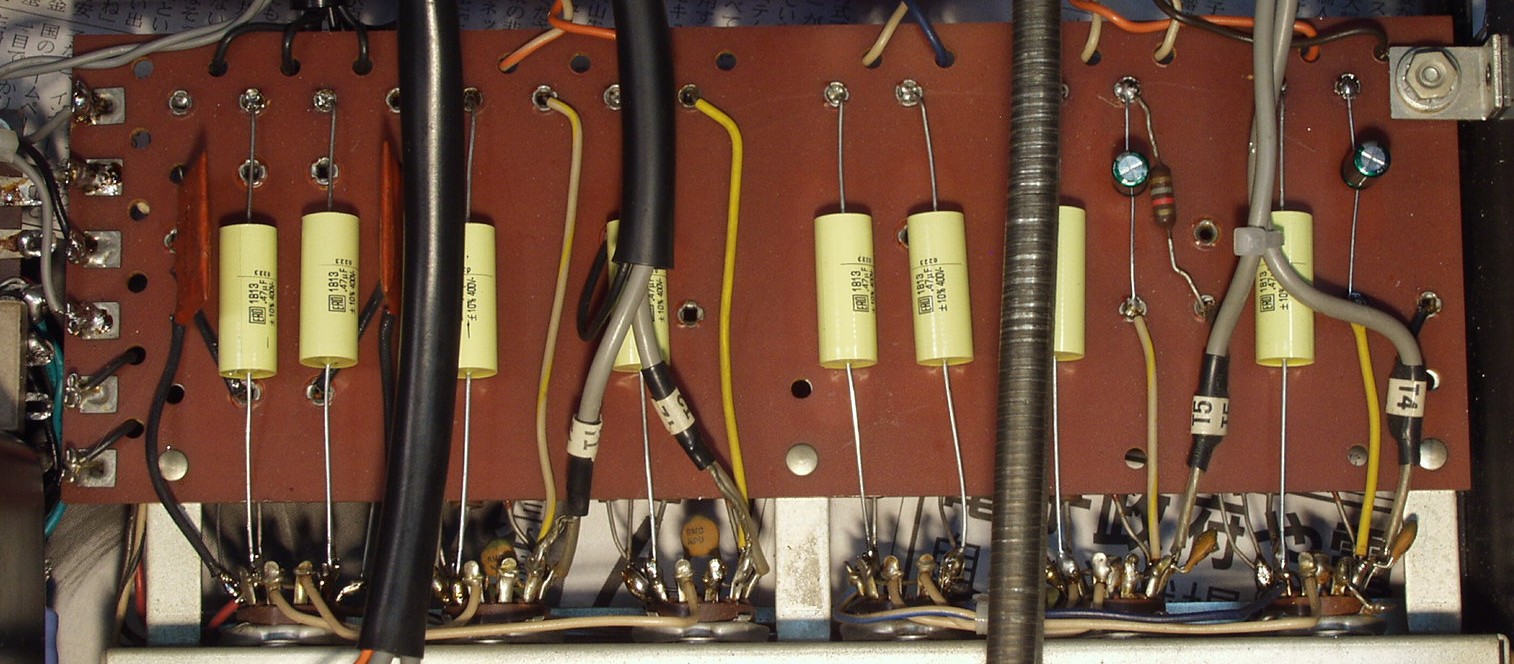 | C2B. 修理後 メイン基盤 電解コンデンサ−2個、フイルム・コンデンサー10個交換 | ||||||||||||||||||||||||||||||
