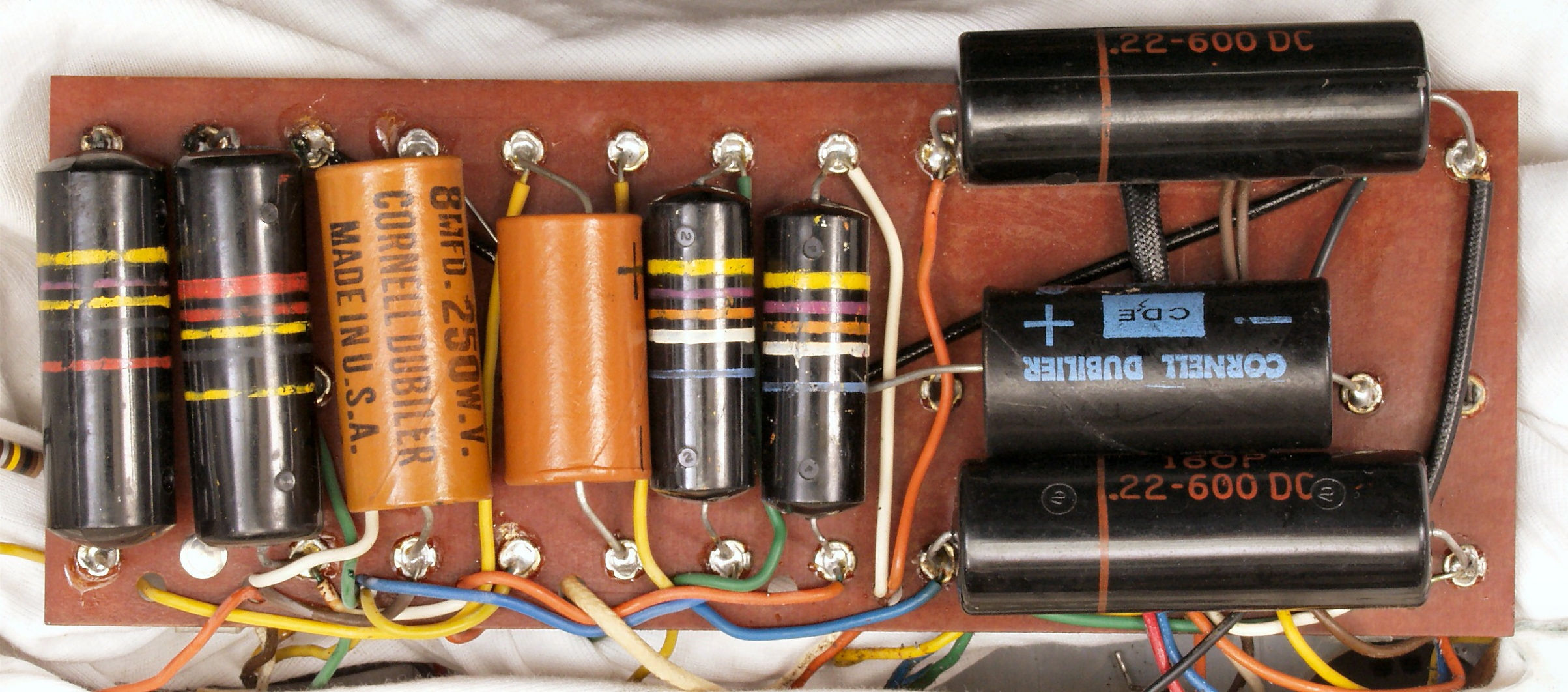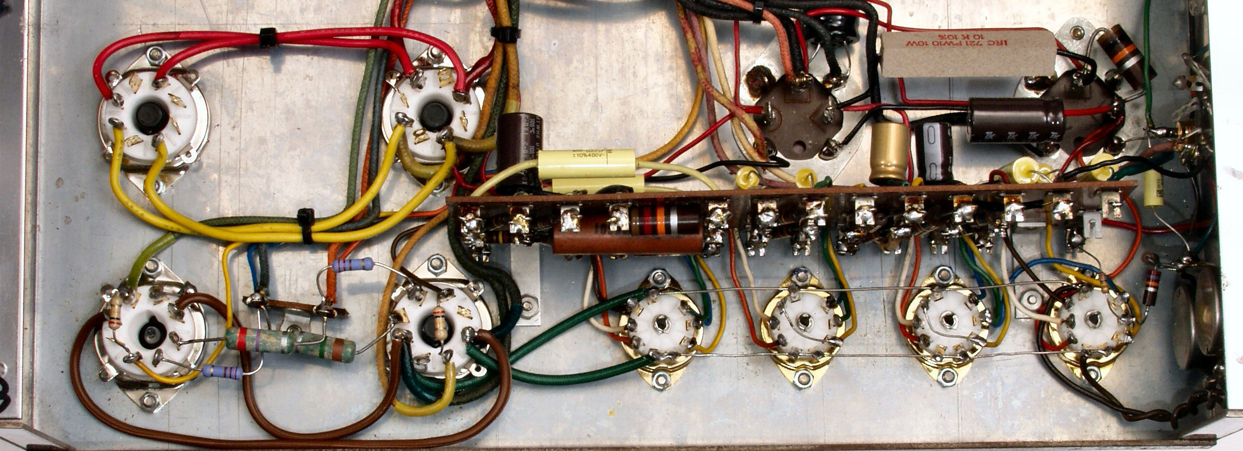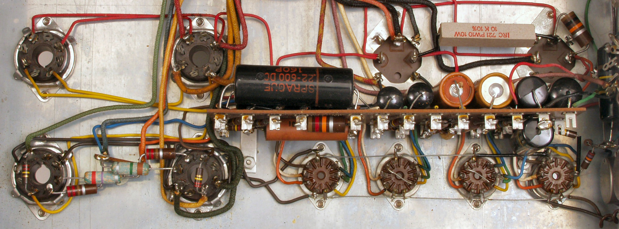 | C12. 修理中 5U4の高圧の配線、半田の角が出ている、AC400Vなので難無きだが100Vになると!! |