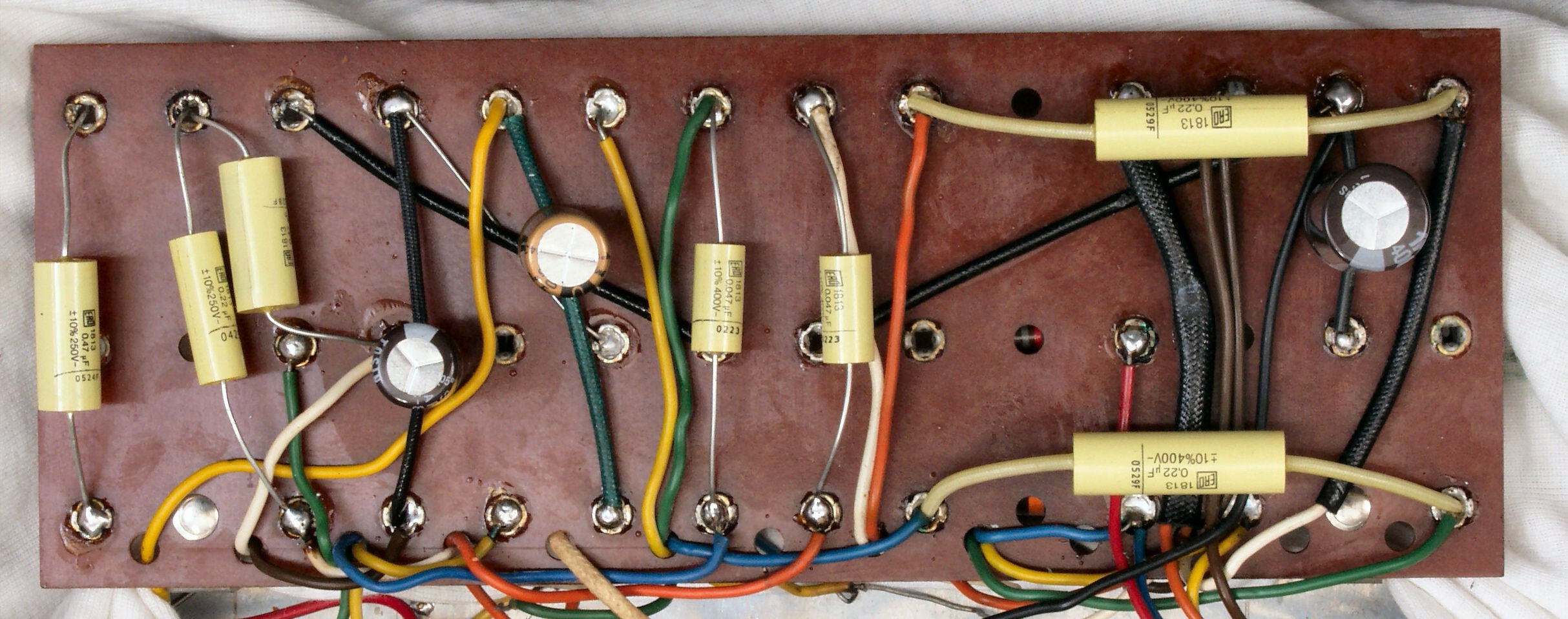 | C13. 修理中 トランスからのKT−88等のヒーター電圧供給配線、半田が乗っていない! |