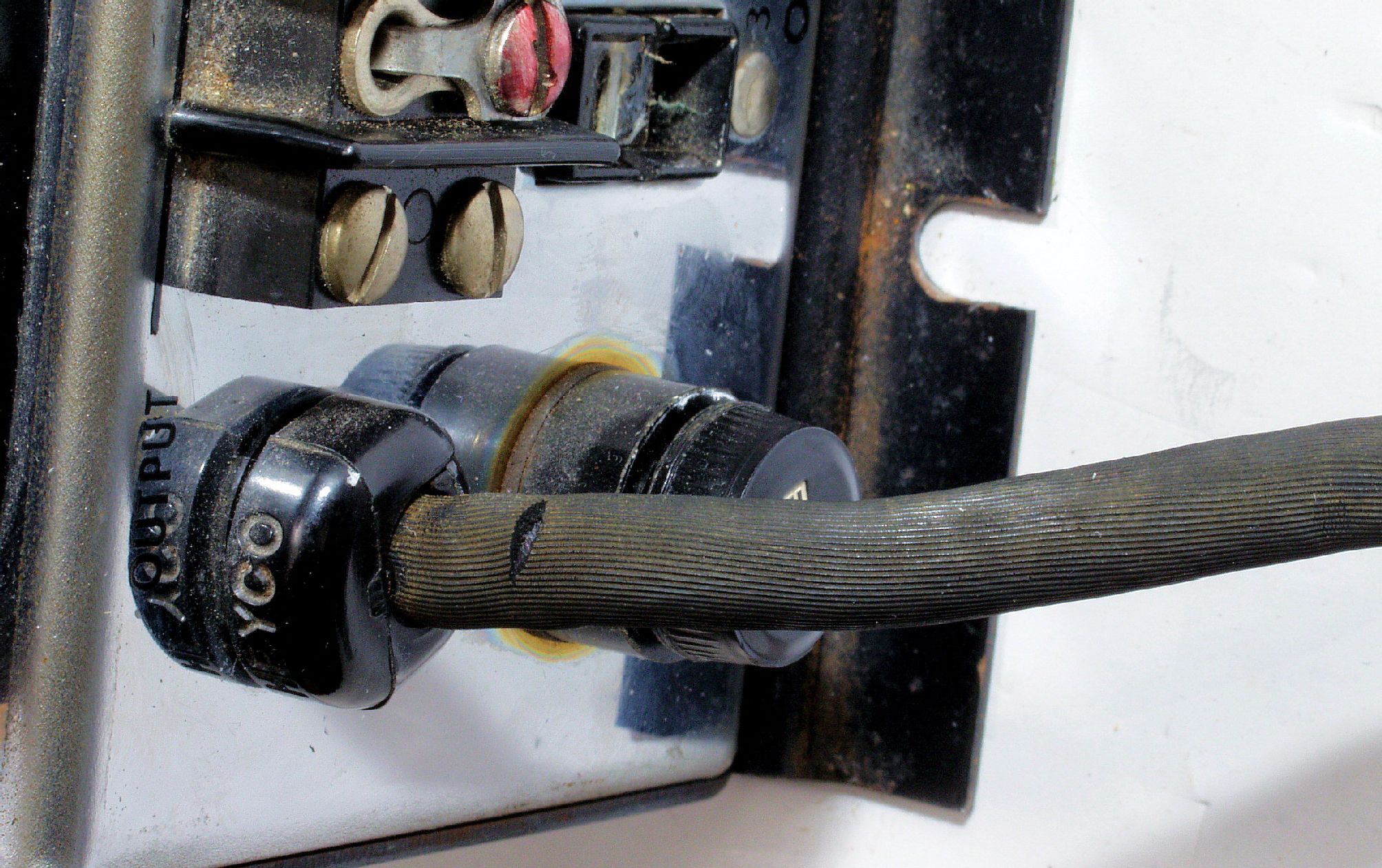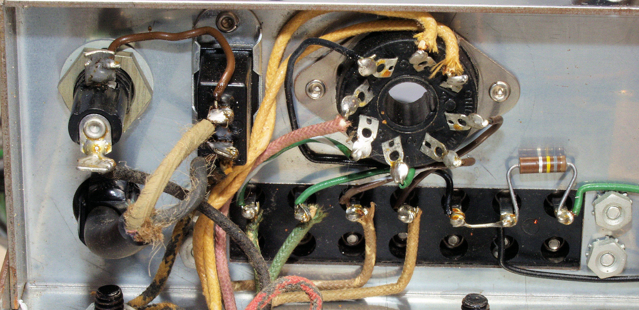 A43. 点検中 真空管ソケットを内側から見る、止め金が腐食している。