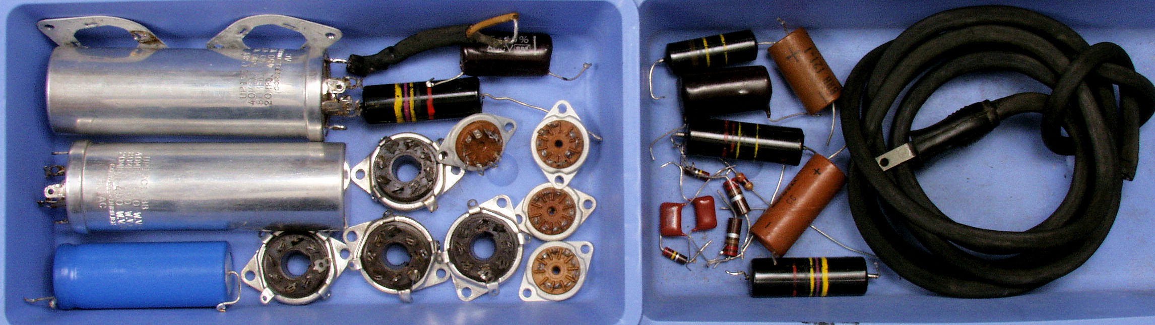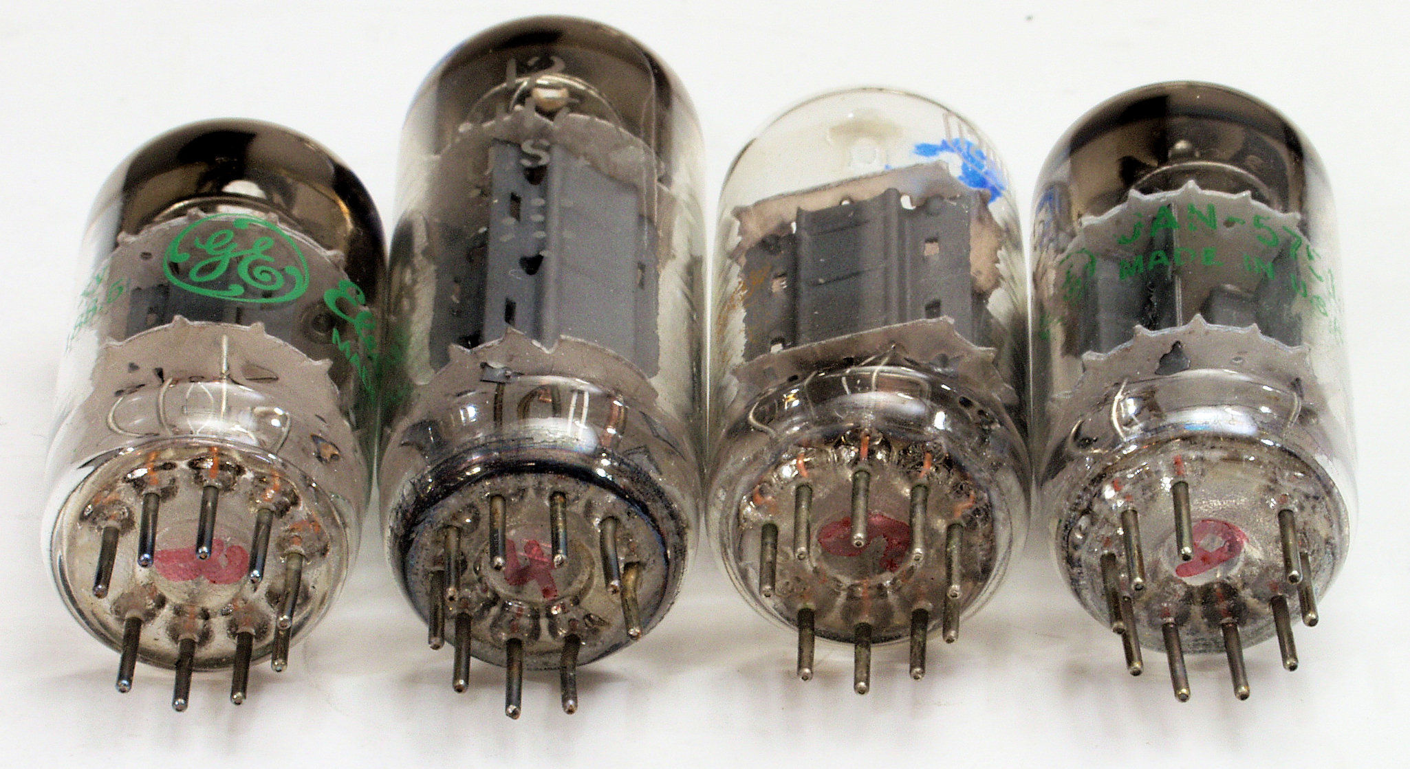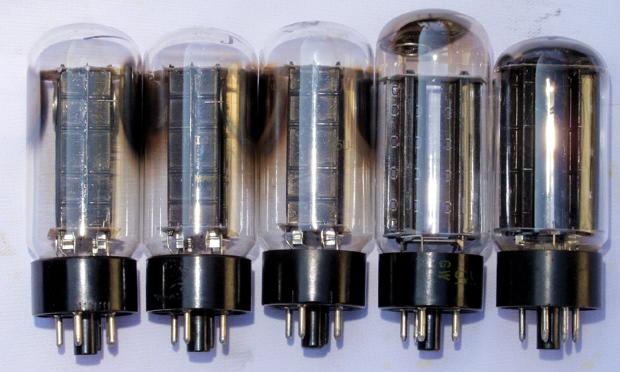 V1.  予備真空管「6550A」.左から1,2、3,4本目。