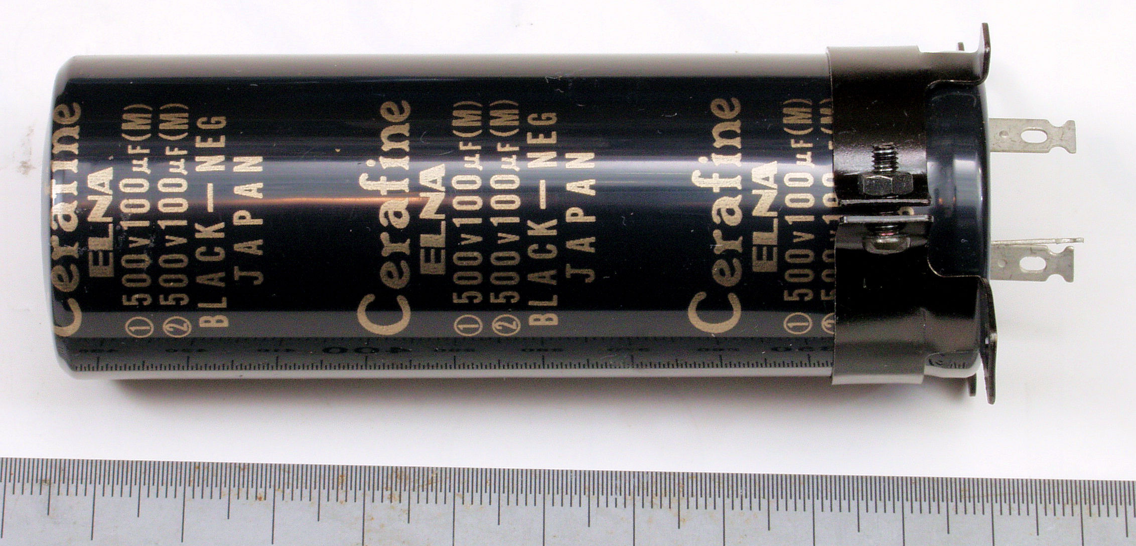 ブロック電解コンデンサー交換、「ElNA Cerafine」。