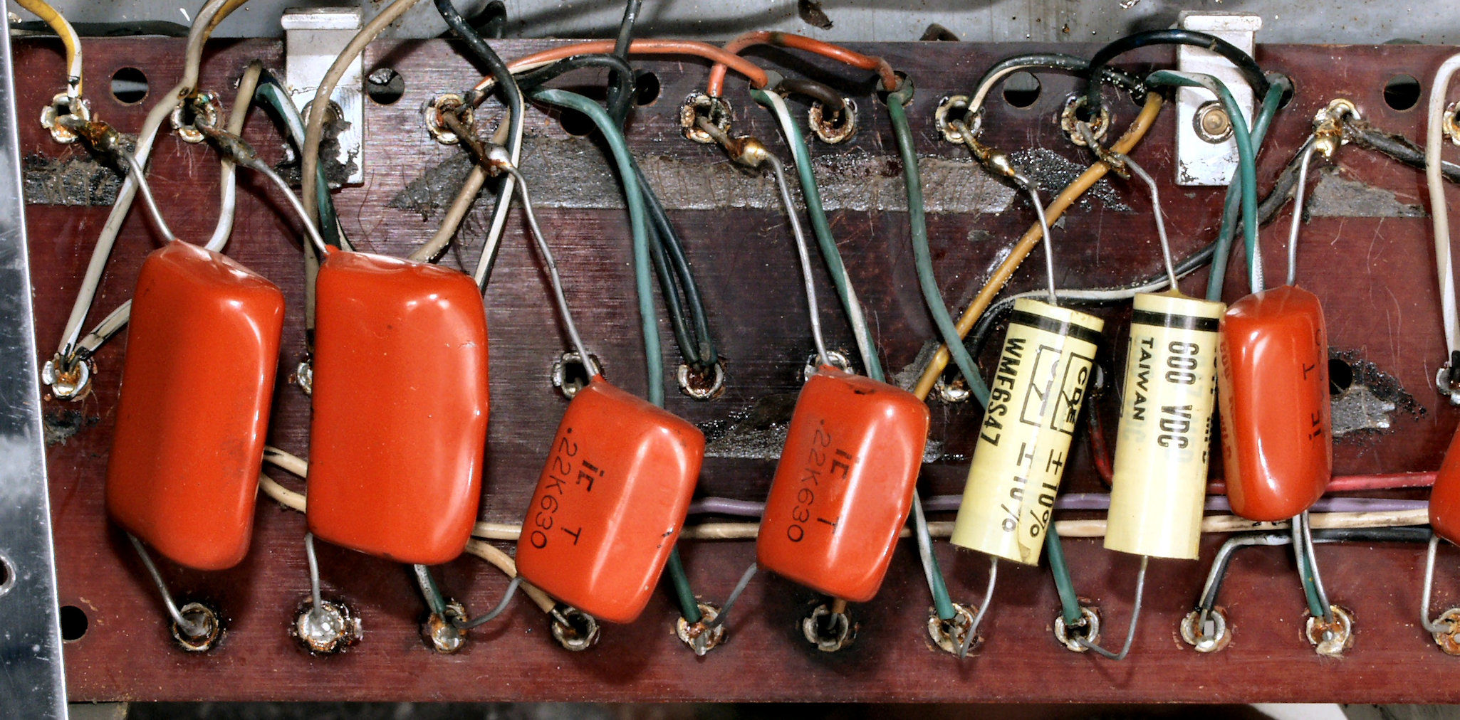 | A32. 点検中 交換する電源ブロックコンデンサー、「ElNA Cerafine」。 | ||||||||||||||||||||||||