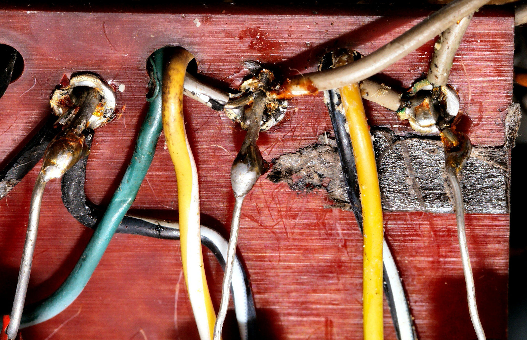 | C73. 修理前 電源トランス引き出し線、熱で、内部のピッチが溶け出し、絶縁が堅くなり、不良が出始めている | ||||||||||||||||||||||||