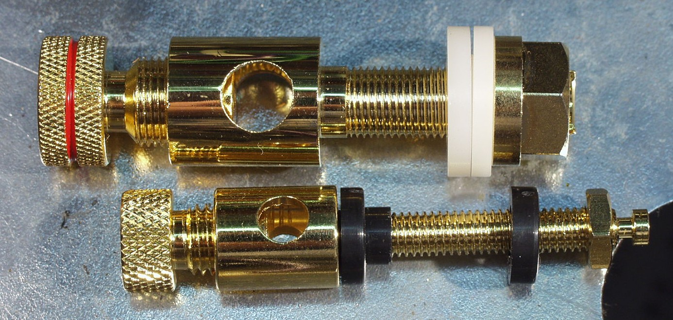 | C3C. 修理中 下=支給SP接続端子 上=手持ち大型SP接続端子、 同じ穴加工するなら大型を使うほうが良いでしょう | ||||||||||||||||||||||