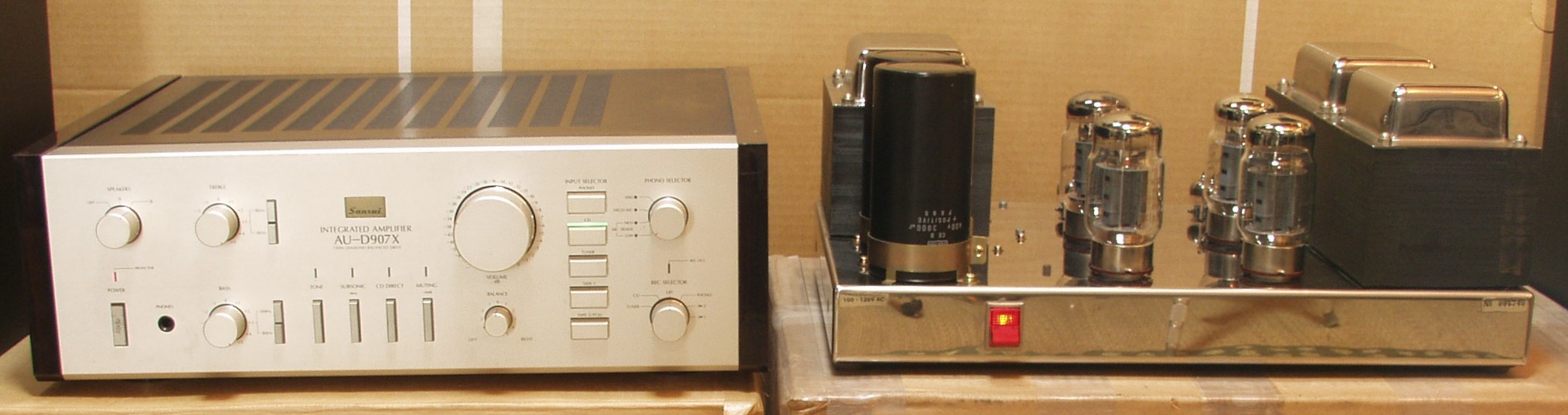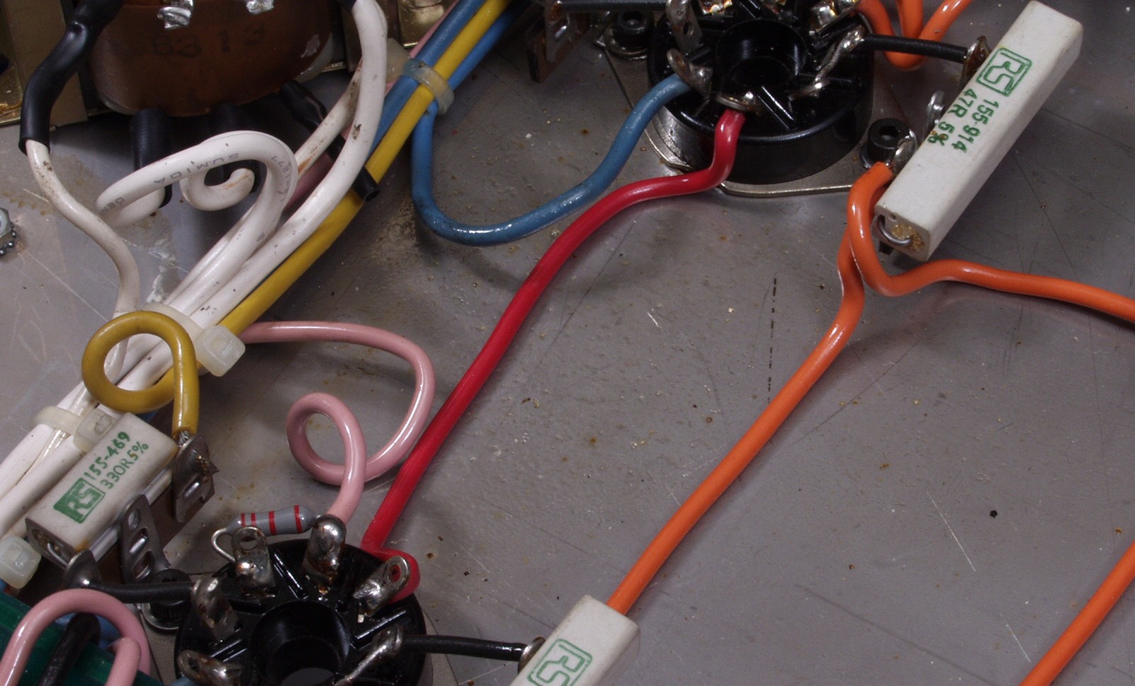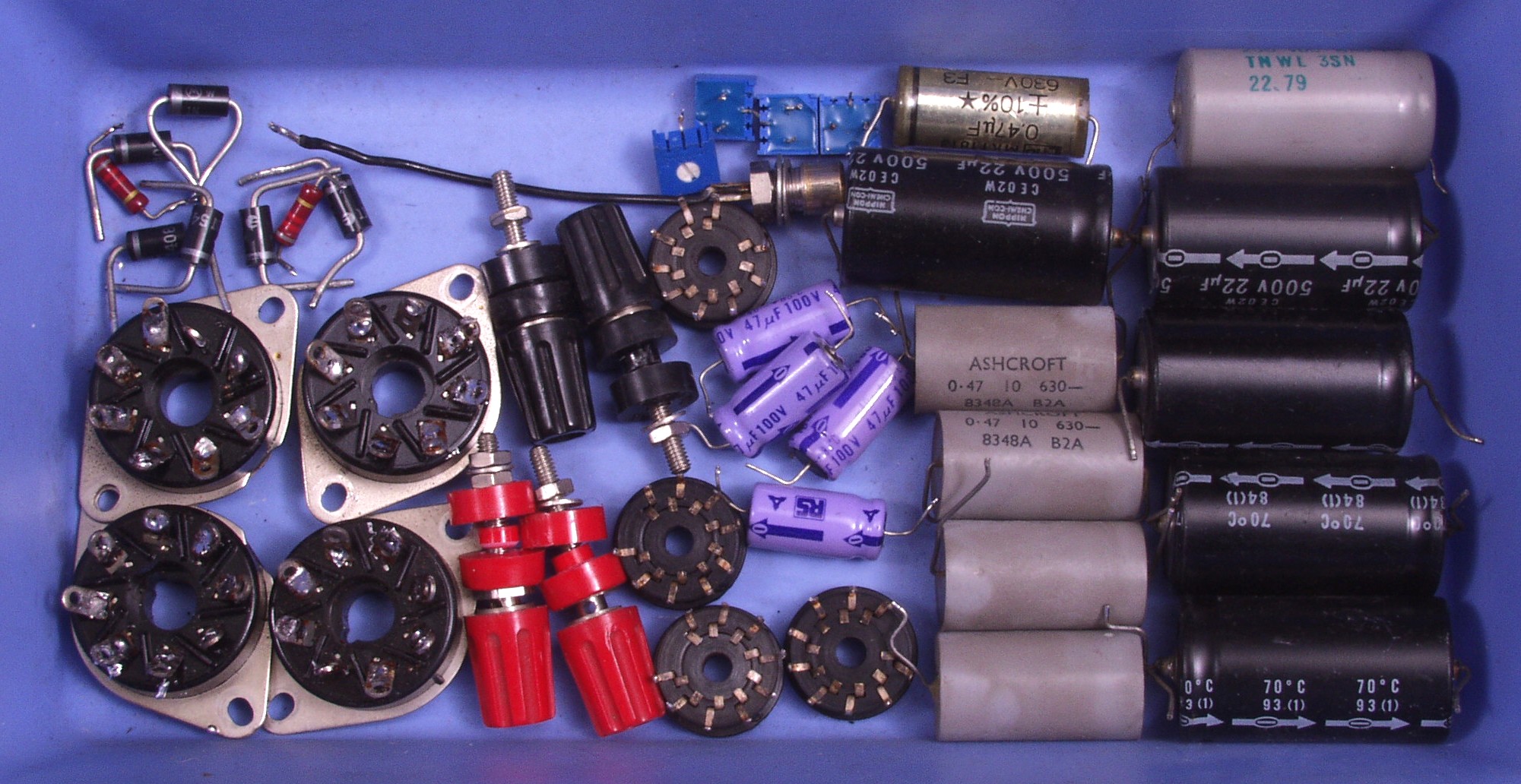 | A5. 修理前点検 KT−88のソケット比較 下=交換するステアタイト製、上=古いモールド製。 | ||||||||||||||||||||||