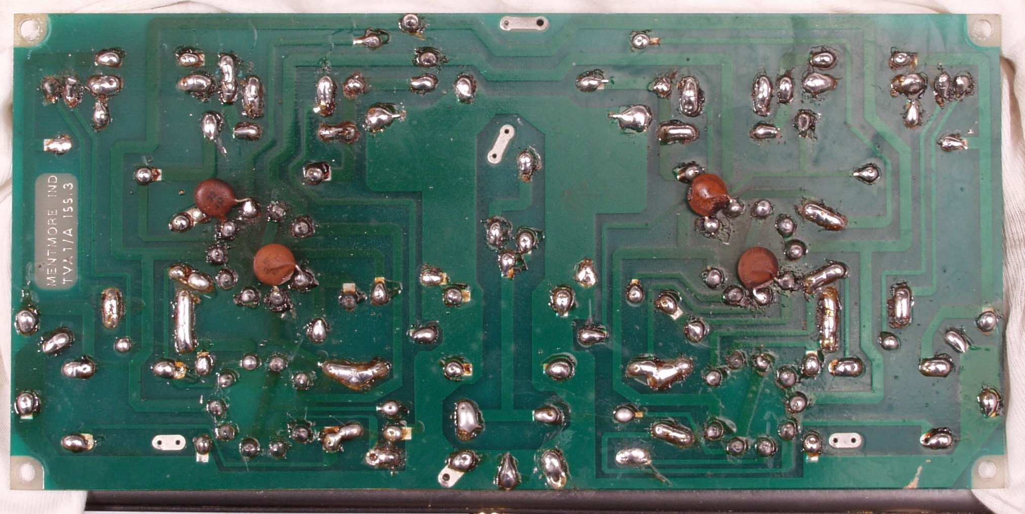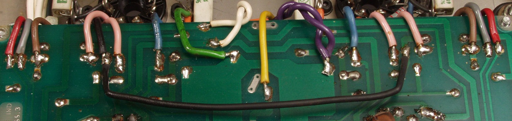 | A32. 修理前点検 前段AMP基板裏へ半田付け? 殆ど素人の仕事! | ||||||||||||||||||||||