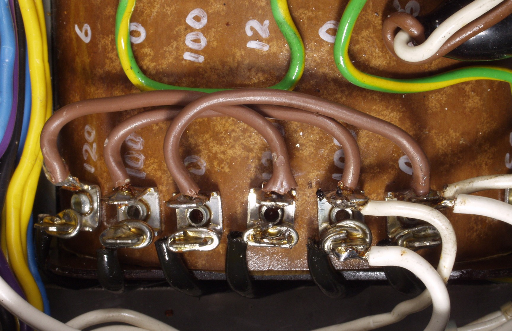 | A4. 修理前点検 電源トランスの1次巻き線が100Vと120Vのタップ両方が接続してある? | ||||||||||||||||||||||