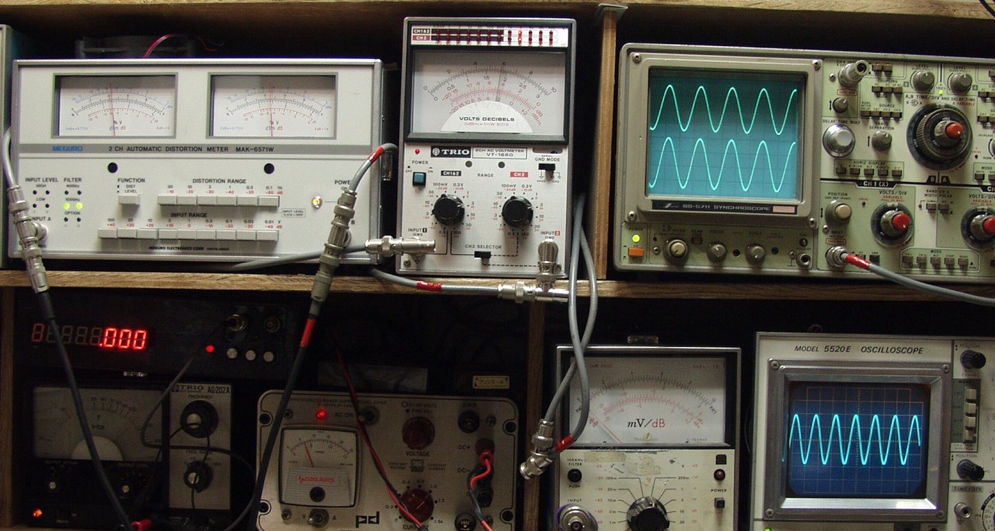 11. 出力測定 2V 歪み率0.05% MM入力=右下オシロ=1000HZ